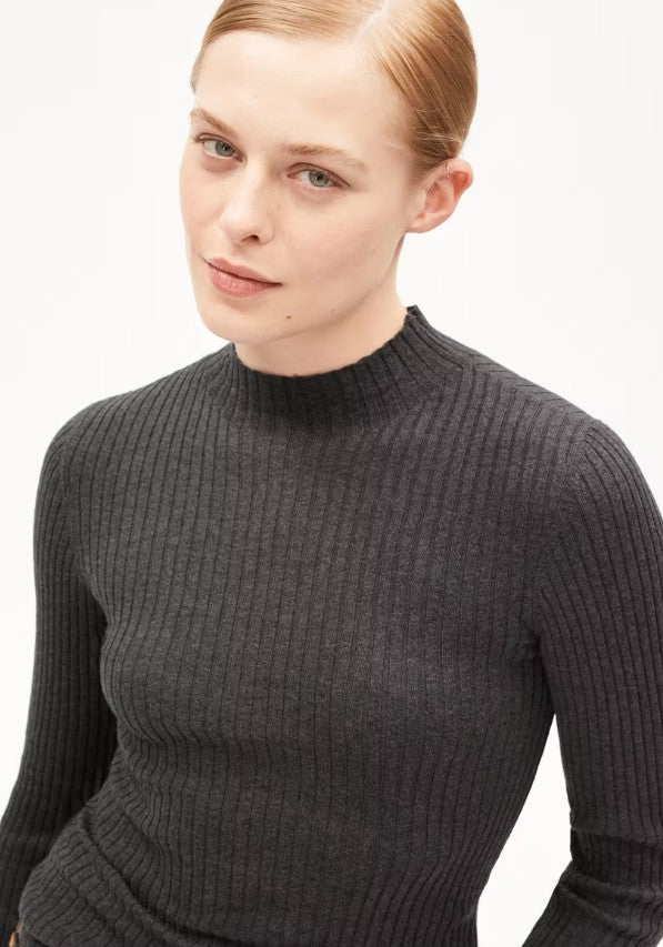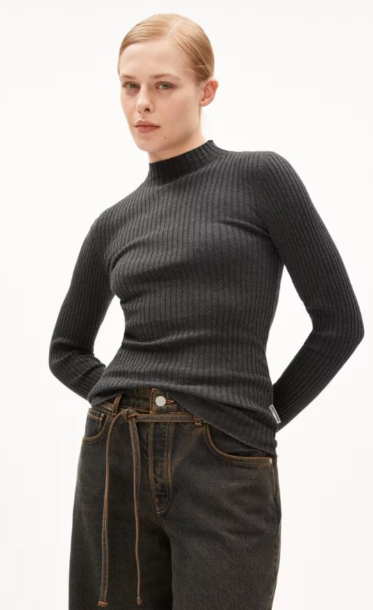 Unser ALAANIA Pullover umhüllt Dich mit seinem anliegenden Design und dem hohen Kragen in stilvoller Wärme. Gefertigt aus Bio-Baumwolle, schenkt er Dir ein superweiches Hautgefühl und strahlt schlichte Raffinesse aus. Ein zeitloses Essential, das Deine Silhouette sanft umschmeichelt und sich mühelos in Deinen Look integriert, während es Dir das Gefühl von Komfort und Selbstbewusstsein verleiht.