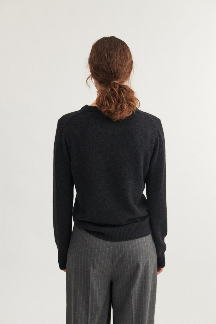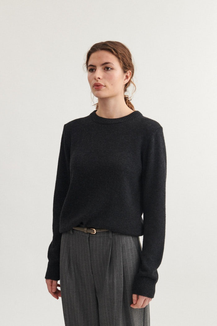 Cady O-Neck besteht aus einer Mischung aus recycelter Wolle und ist sehr weich zu tragen.