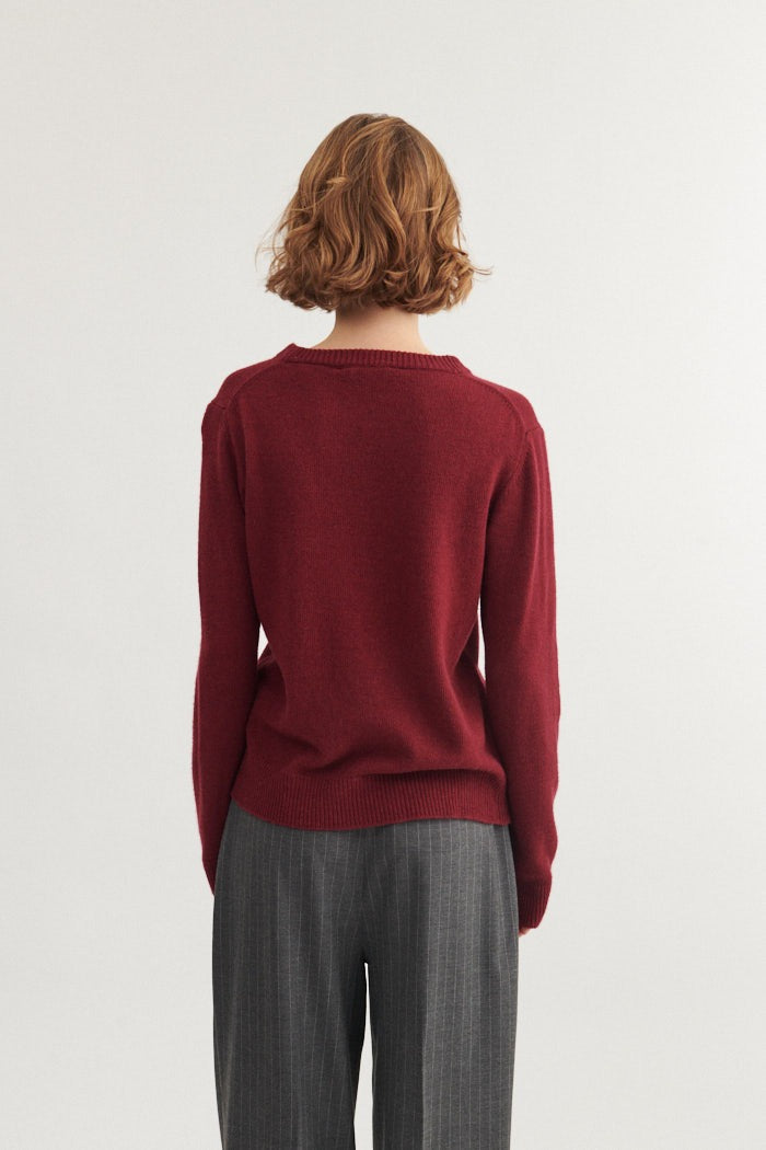 Cady O-Neck besteht aus einer Mischung aus recycelter Wolle und ist sehr weich zu tragen.