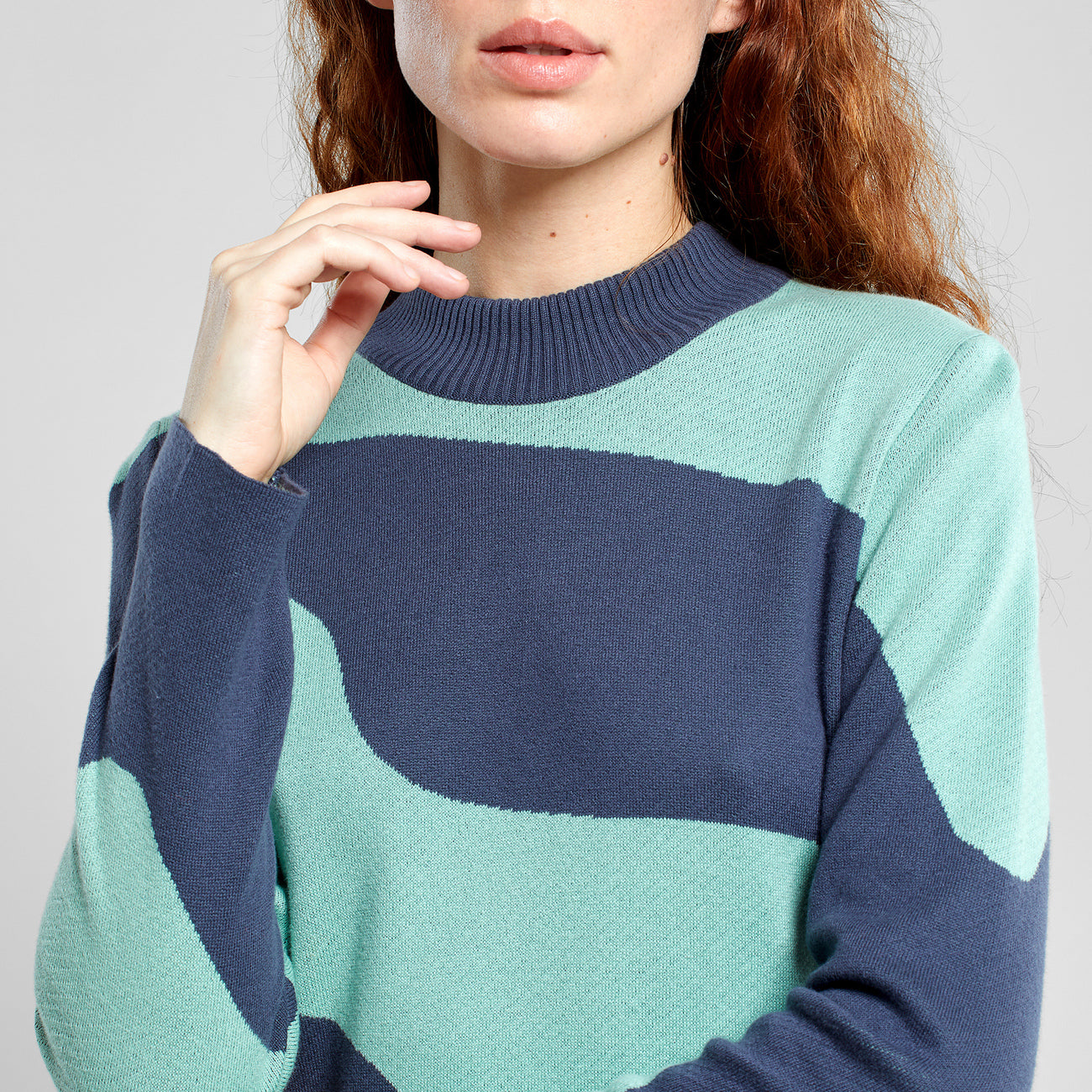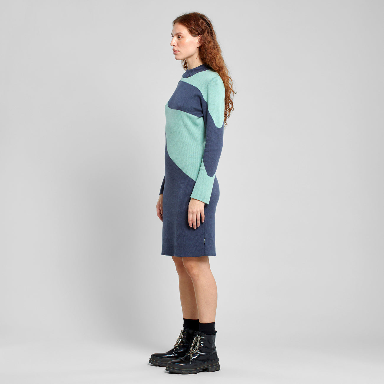 Strickkleid in Midilänge aus weicher Bio-Baumwolle. Gerippter Halsausschnitt und lange Ärmel.