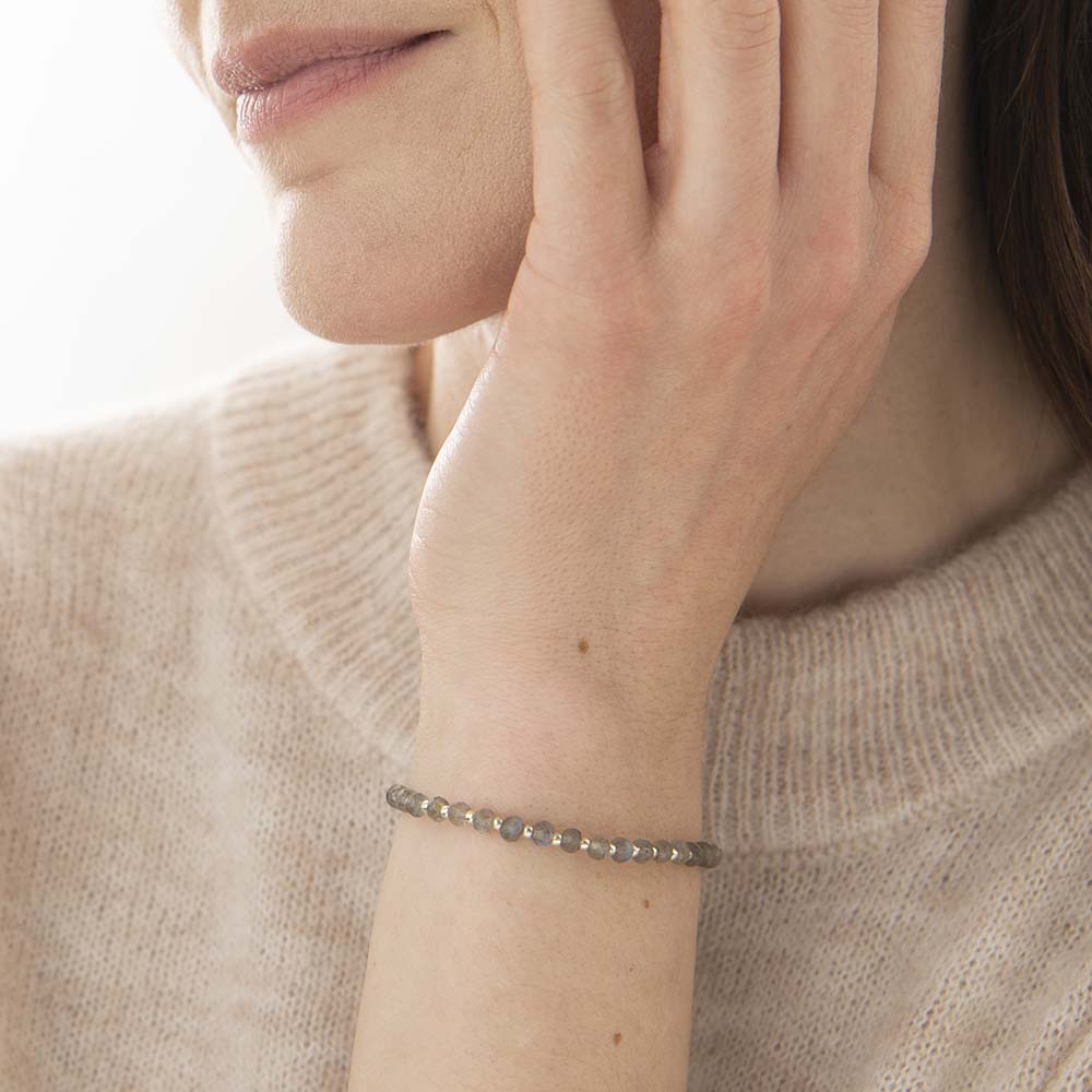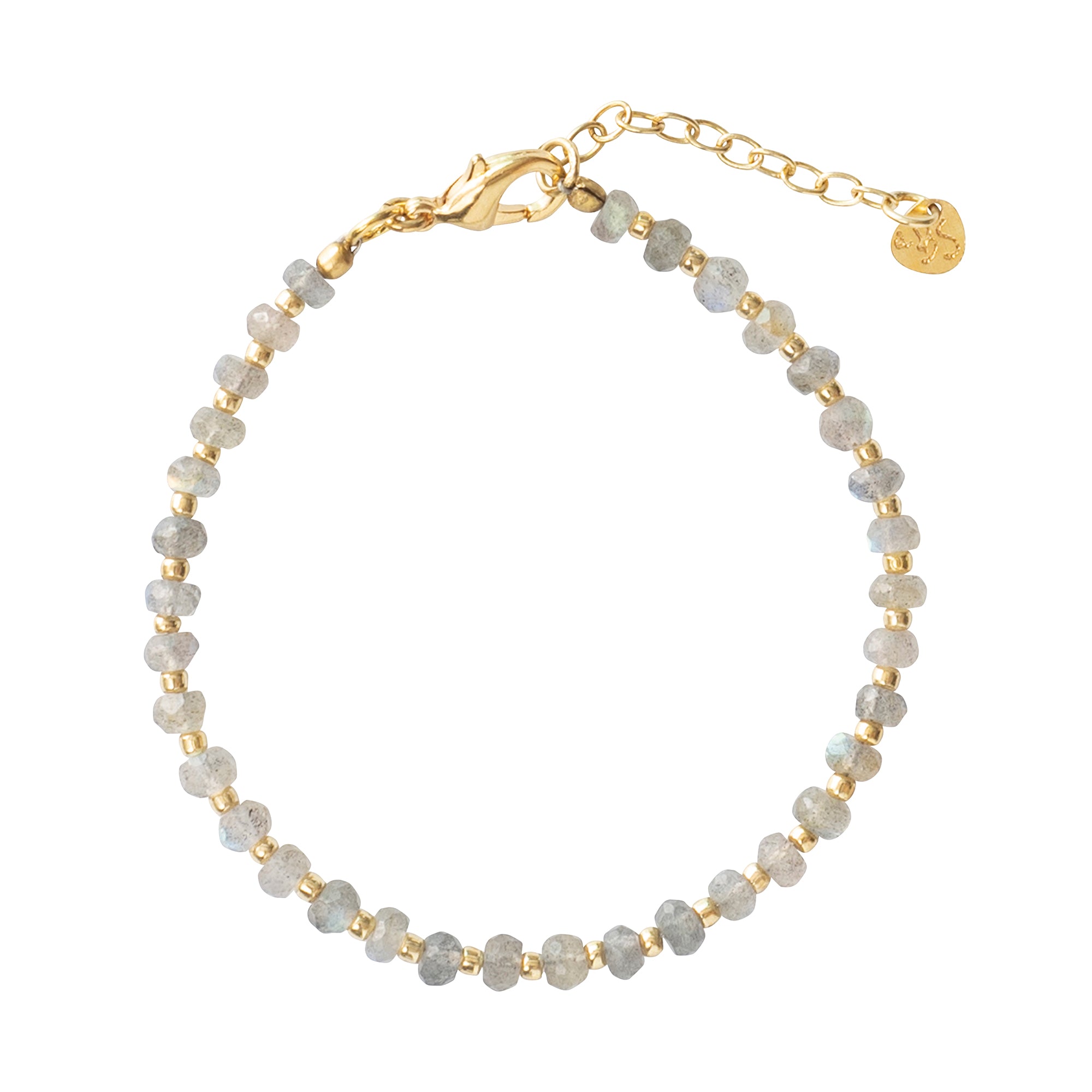 Dieses Energy-Labradorit Gold-Armband von A Beautiful Story besteht aus Edelsteinperlen aus blauem Spitzenachat. Das Armband ist verstellbar, so kannst Du es nach Deinem Geschmack so einstellen, dass es schön um Dein Handgelenk fällt.