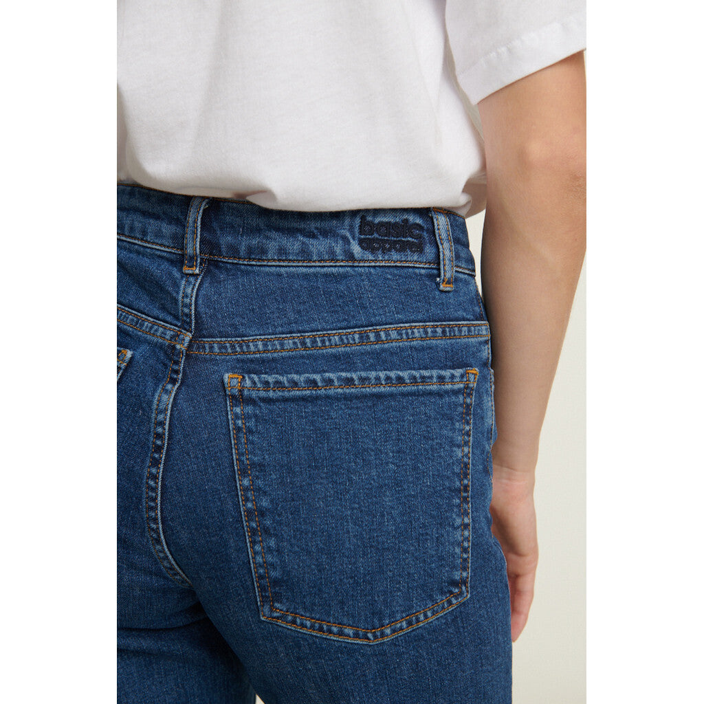 Enya Mid Blue Jeans are made of 99% cotton (organic) and 1% elastane. The style has wide straight-legs and a regular waist.