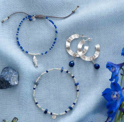 Darf ich vorstellen: das silberfarbige Flashy Lapislazuli Armband.Dieses elastische Armband kombiniert silberne, blau- und grünfarbene Glasperlen mit kleinen rohen Lapislazuli Edelsteinen.Lapislazuli ist der Stein der Verbindung. Lapislazuli schenkt dir den Mut zu sagen, was dir auf dem Herzen liegt. Durch diese Haltung und Aufrichtigkeit lernst du andere Menschen und Seelenverwandte kennen. Freundschaft in ihrer schönsten Form.