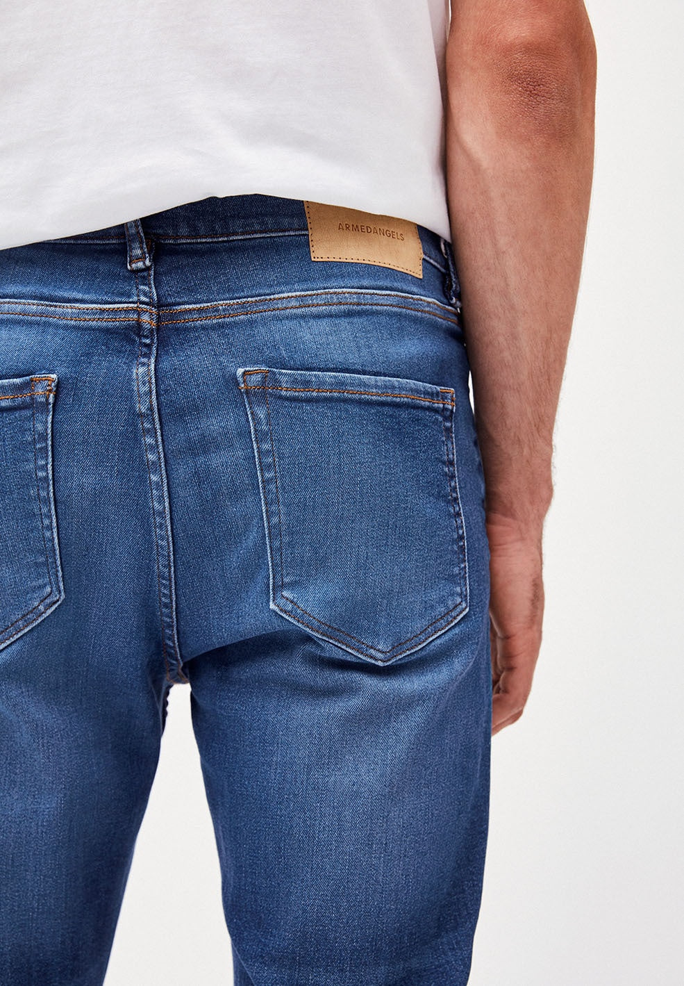IAAN X STRETCH, unsere nachhaltige DetoxDenim mit schmaler Passform, liegt körperbetont an Hüfte und Oberschenkeln ohne einzuengen. Der extra Stretch-Anteil sorgt für ein Plus an Bewegungsfreiheit.