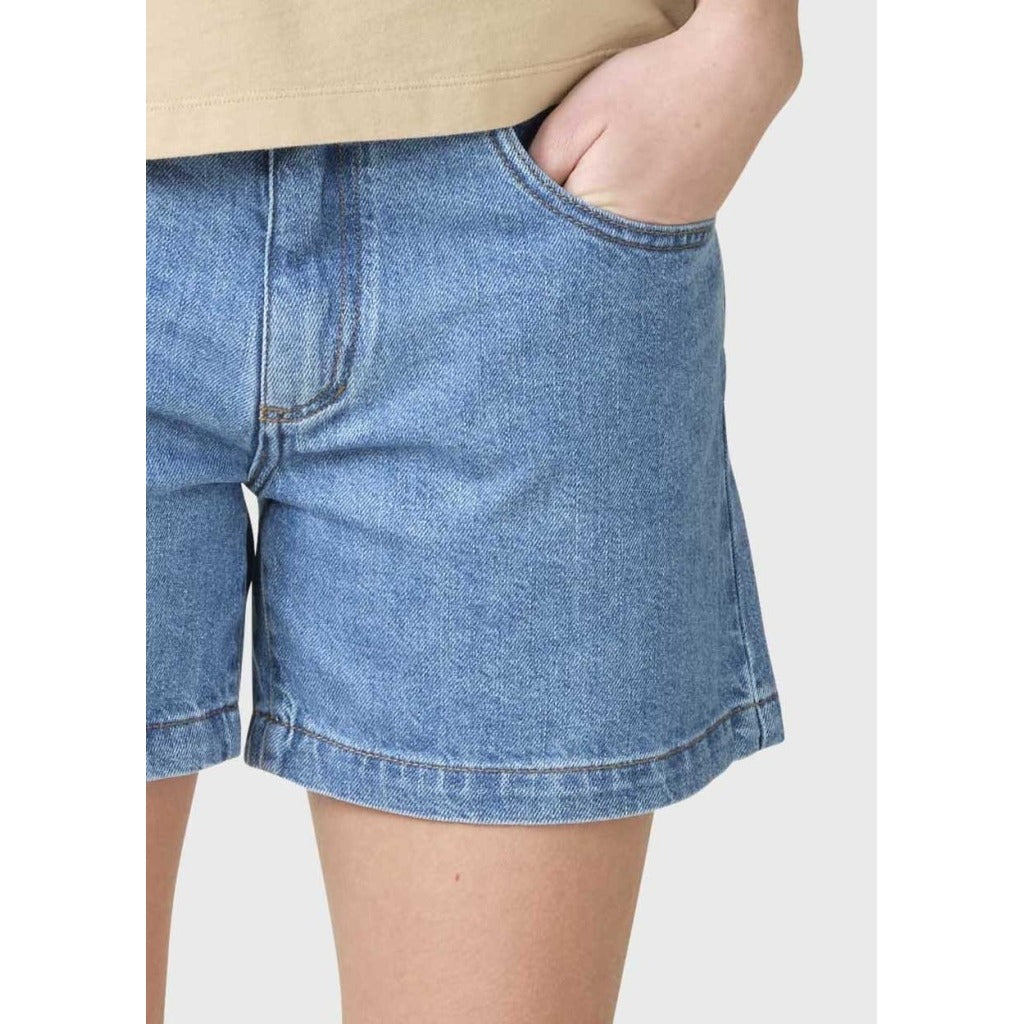 Jenna ist eine kurze Denim-Shorts mit Gürtelschlaufen, Knopfverschluss, zwei Seitentaschen und zwei Gesäßtaschen.