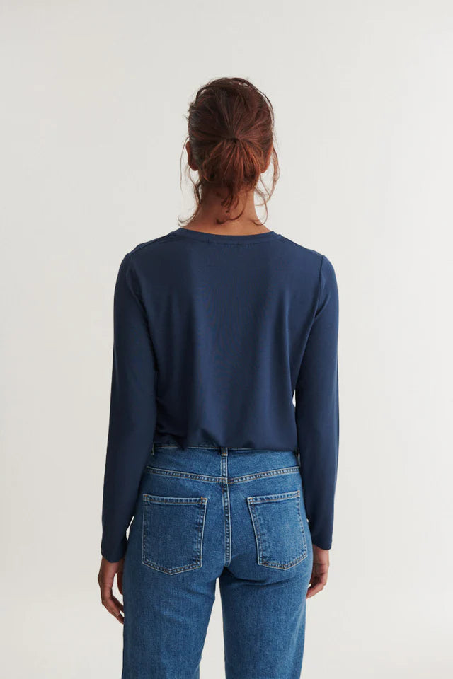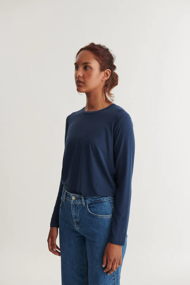 Das Jolanda LS Tee ist ein vielseitiges Must-have für Ihre Garderobe. Es besteht aus 96 % Tencel und 4 % Elasthan und fühlt sich weich und atmungsaktiv an. Der seidig-glatte Jersey-Stoff bietet leichten Tragekomfort und eignet sich perfekt zum Solo-Tragen oder unter Jacken und Pullovern. Mit seiner lockeren Passform und den normalen Schultern sorgt dieses T-Shirt für einen lässigen Stil und eine bequeme Silhouette. Der klassische Rundhalsausschnitt und die langen Ärmel sorgen für Alltagstauglichkeit, während das weiche Jersey-Material schön fällt. Das Jolanda LS Tee wird verantwortungsbewusst in der Türkei hergestellt und vereint Nachhaltigkeit, Komfort und zeitlosen Stil, was es zu einer zuverlässigen Wahl für Freizeitoutfits oder Lagenlooks für jede Jahreszeit macht..