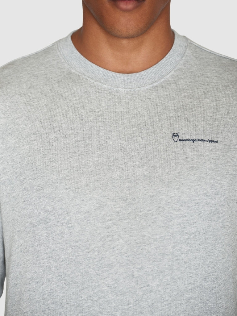 KnowledgeCotton Apparel sweatshirt is made from mid-weight fleece. It features ribbing at neck, sleeve and hem and an original brand logo print on the right chest.