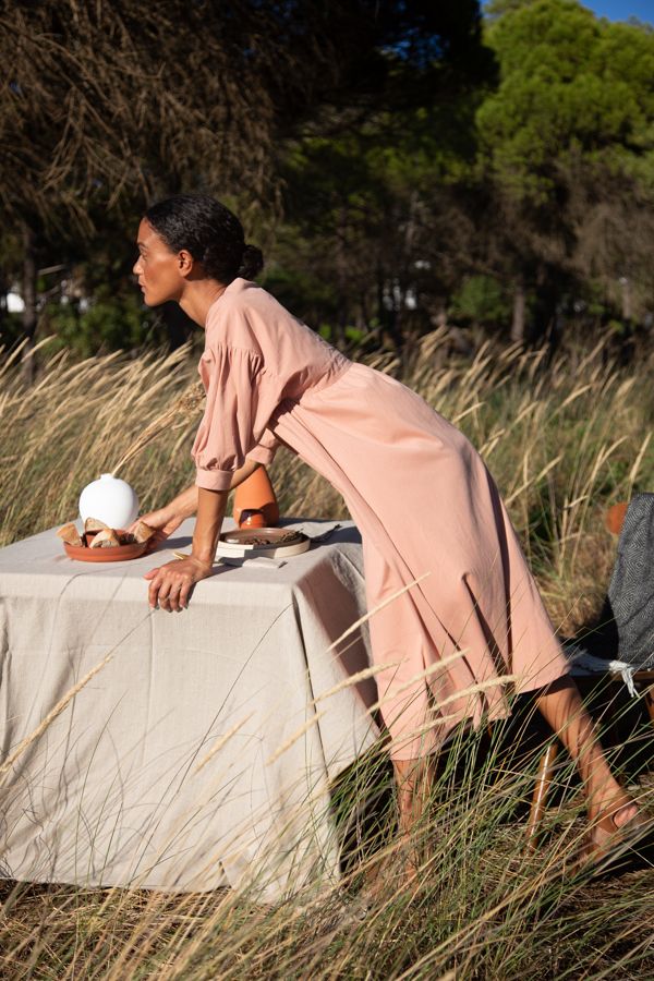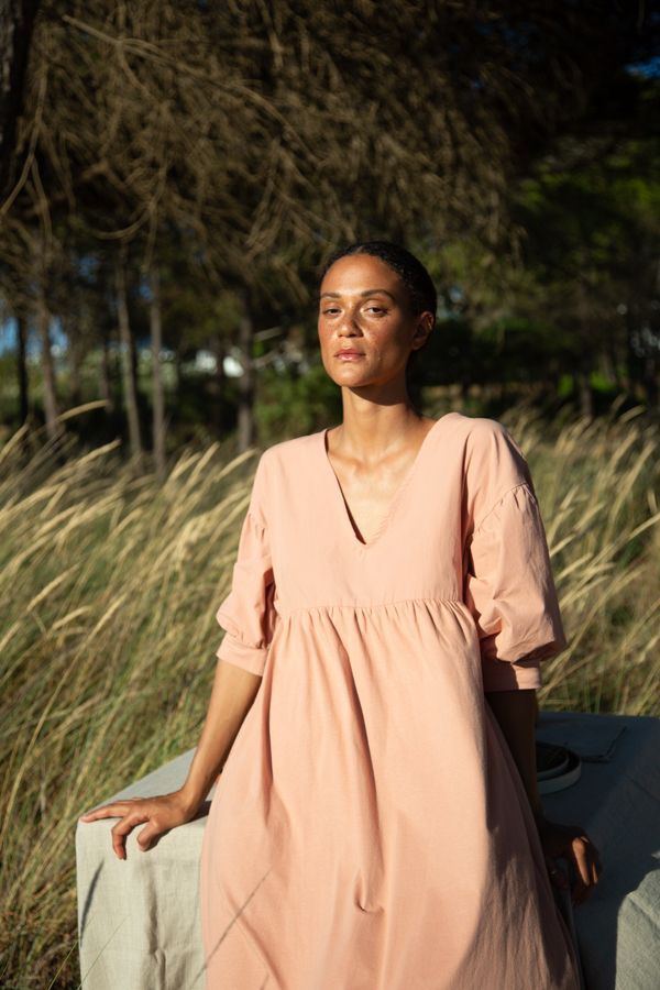 The Maeve is a new style for SS23. An elegant midi style dress with softly gathered sleeves, seam detail on chest and v-neck at front. Pockets at side seams.