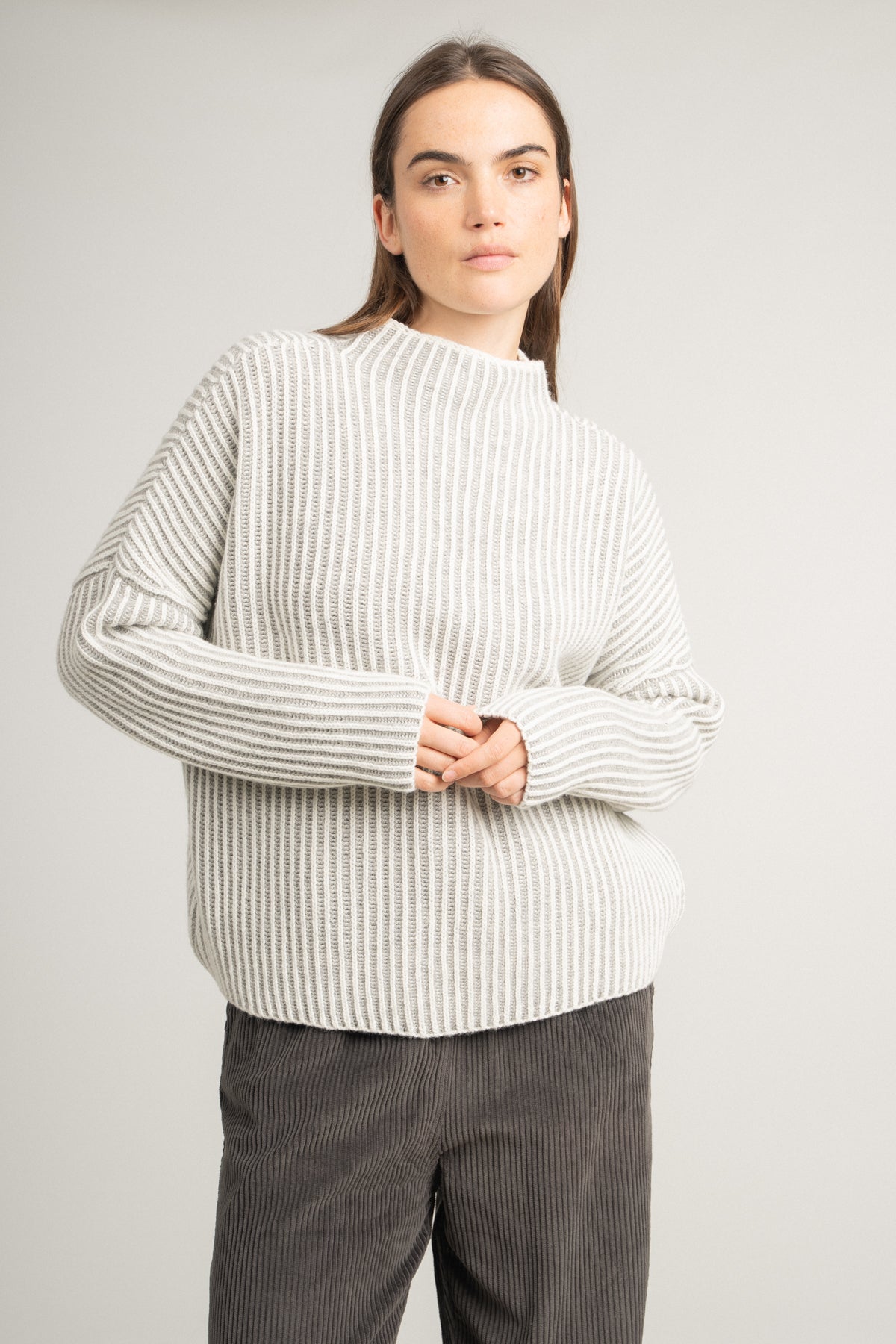 Weicher Strickpullover aus recycelten Materialien mit zweifarbigem Strick und lockerem Sitz mit Stehkragen