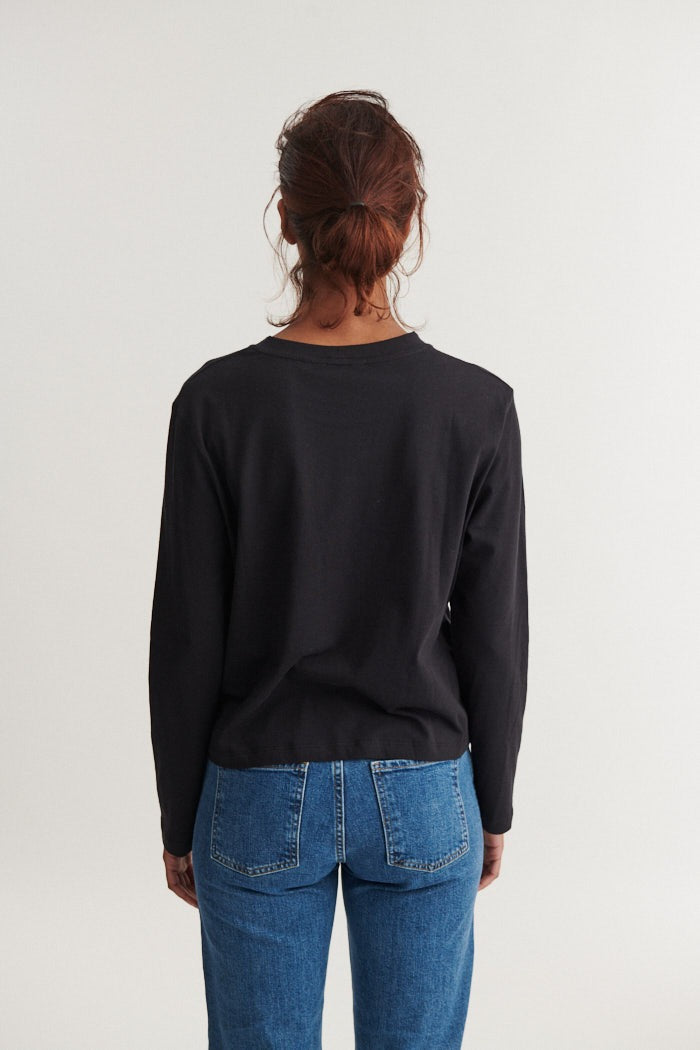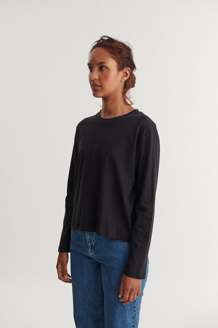 Raja LS Tee is a cotton t-shirt with a loose fit and long sleeves.