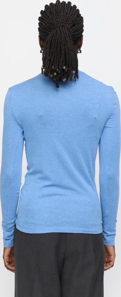 Created with long sleeves, rib pattern, an o-neck and double stitching at the ends.