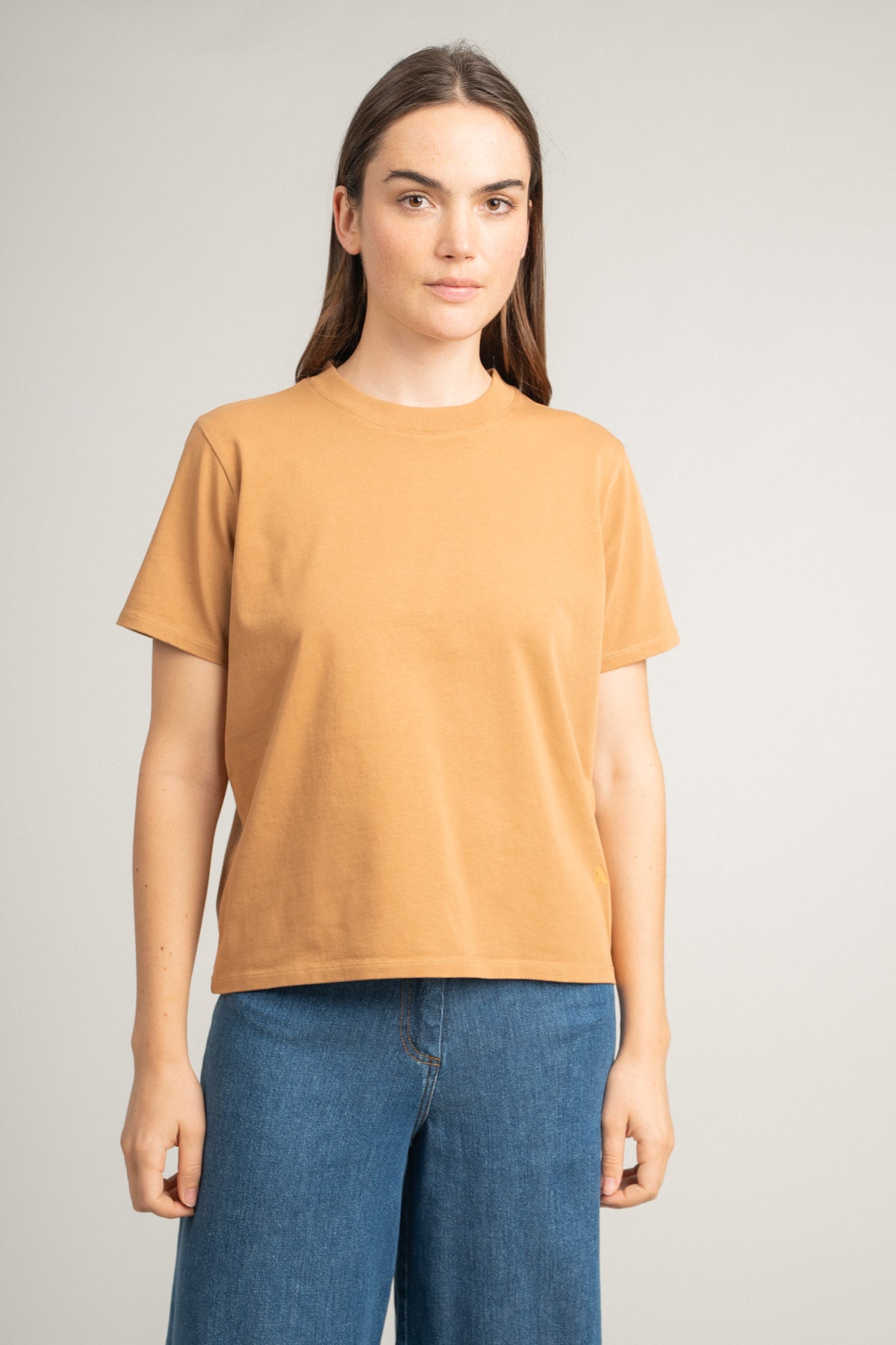 Boxy T-Shirt aus dicht gestricktem Jersey in hochwertiger Bio-Baumwolle. Breiter Kragen.