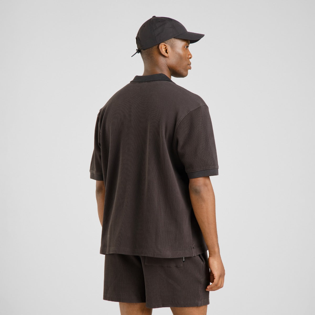 Locker geschnittenes Hemd mit kurzen Ärmeln, geradem Saum und Knopfverschluss vorne. Hergestellt aus Bio-Baumwolle.