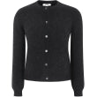 Normale Passform, mit langen Ärmeln und Rippstrick am Halsausschnitt, an den Ärmeln und am Saum. Knopfleiste vorne mit melierter Strickstruktur.