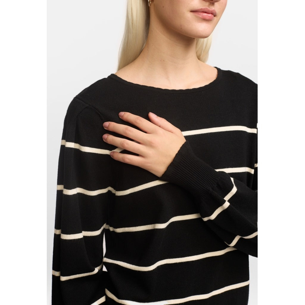 Our classic feminine knit, now with stripes and new colors. The knit is perfect for anyoccasion when wanting to keep warm. The simple and feminin design gives it a sophistiacted look, making it very versatile.