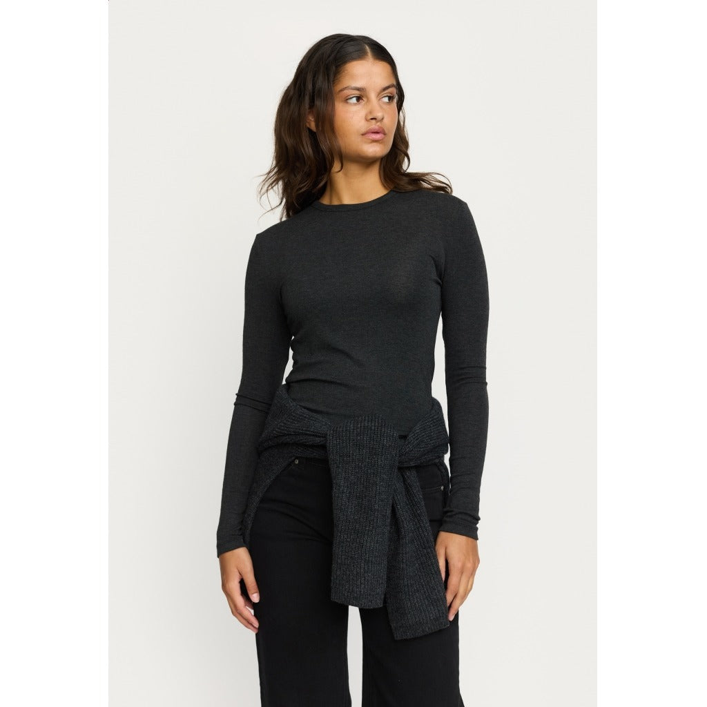 Created with long sleeves, rib pattern, an o-neck and double stitching at the ends.