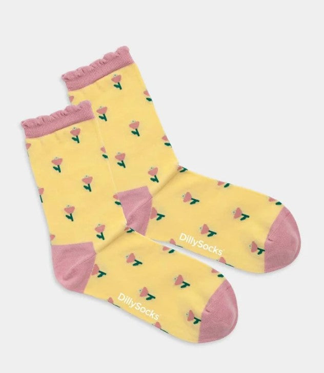 Spaziere durch ein Feld goldener Träume mit den Damensocken Yellow Field of Flowers. Dein Stil ist eine Freudenwiese.