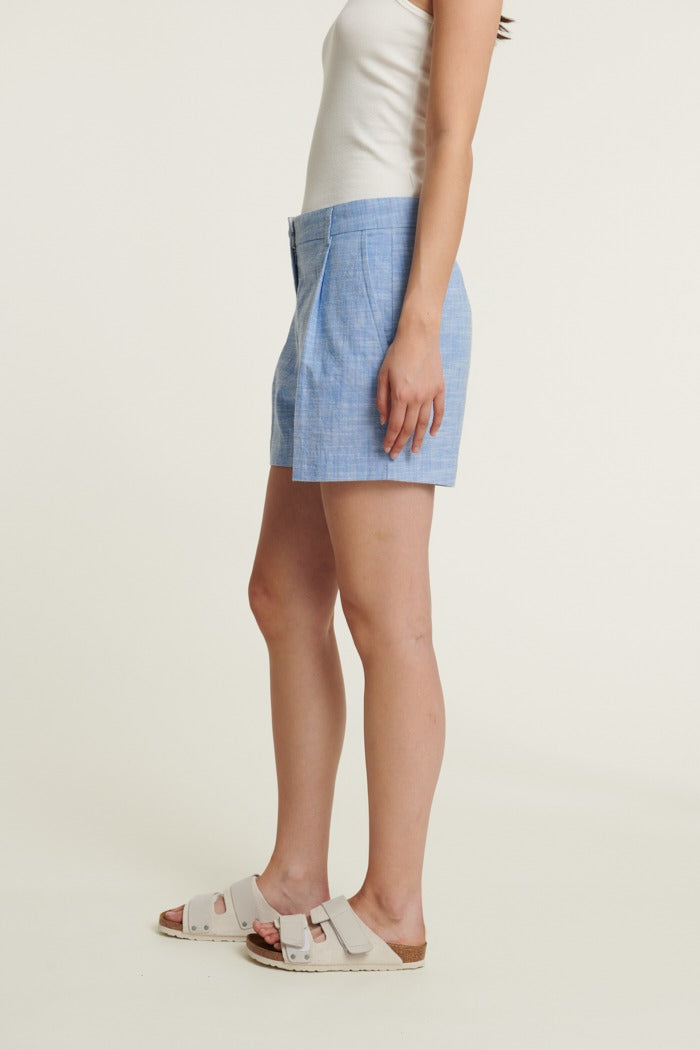 Zita Shorts hat einen verstellbaren Bund und Falten auf der Vorderseite. Die Shorts sind aus 100% Baumwolle (Bio GOTS) hergestellt.