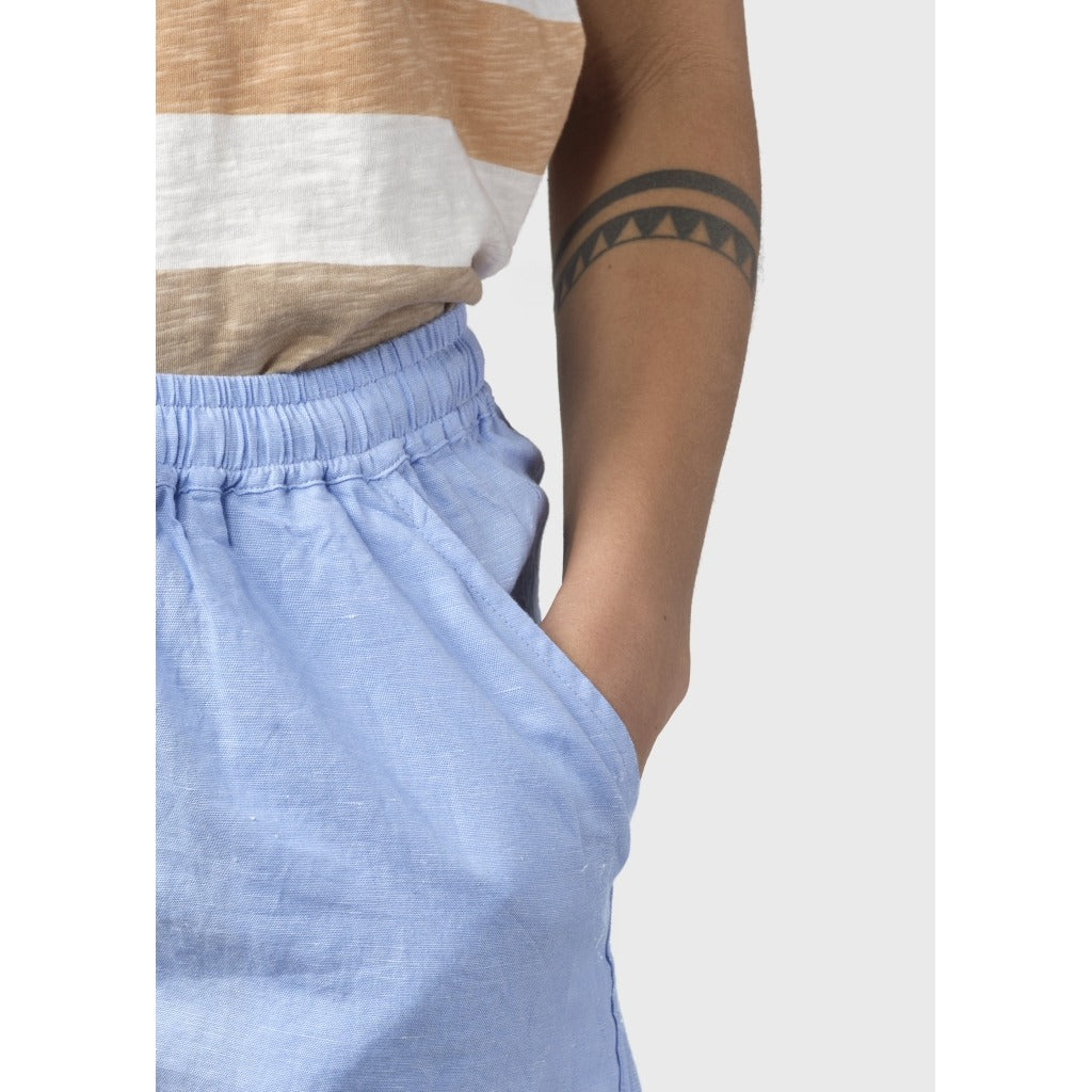 Kombinierst du Abby mit unserer Li-Bluse, erhälst du einen schönen und femininen Look. Die Shorts kann auch sehr gut mit unseren T-Shirts und Bucket-Hüten für ein sportlicheres Set für den Alltag kombiniert werden.
