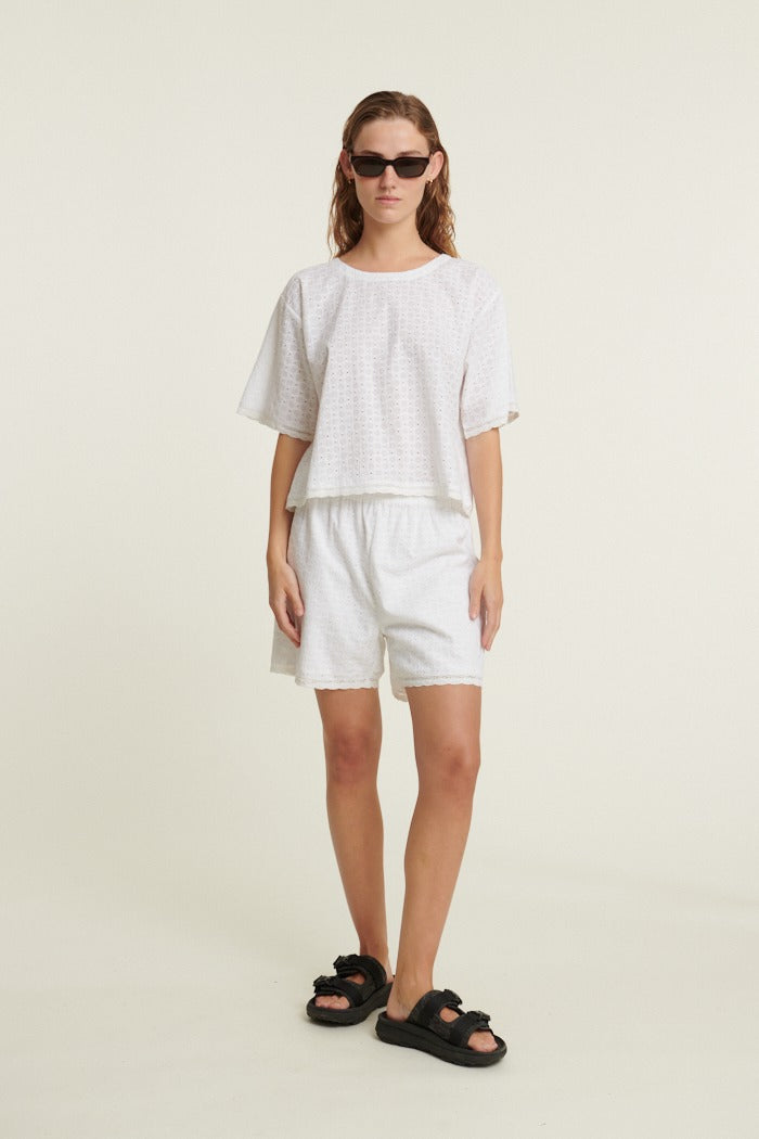 Adie Crop Tee has a loose fit, short sleeves and a round neckline.