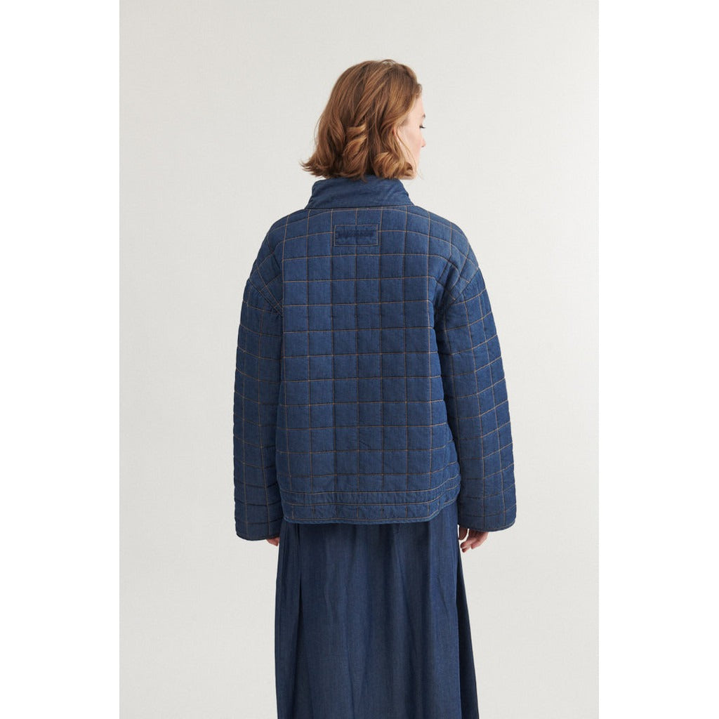 The Bine Bomber Jacket is a modern take on the classic bomber, crafted from lightweight denim with a quilted surface for added texture and character. Designed with an oversized fit, it offers a relaxed silhouette that makes it perfect for layering over shirts, knits, or dresses. The high collar adds a sporty touch, while the practical front pockets and zipper closure provide both function and style. Its light yet durable quality makes it an ideal transitional piece, offering comfort and versatility throughout the seasons. A contemporary wardrobe essential, the Bine Bomber Jacket combines casual ease with modern design.