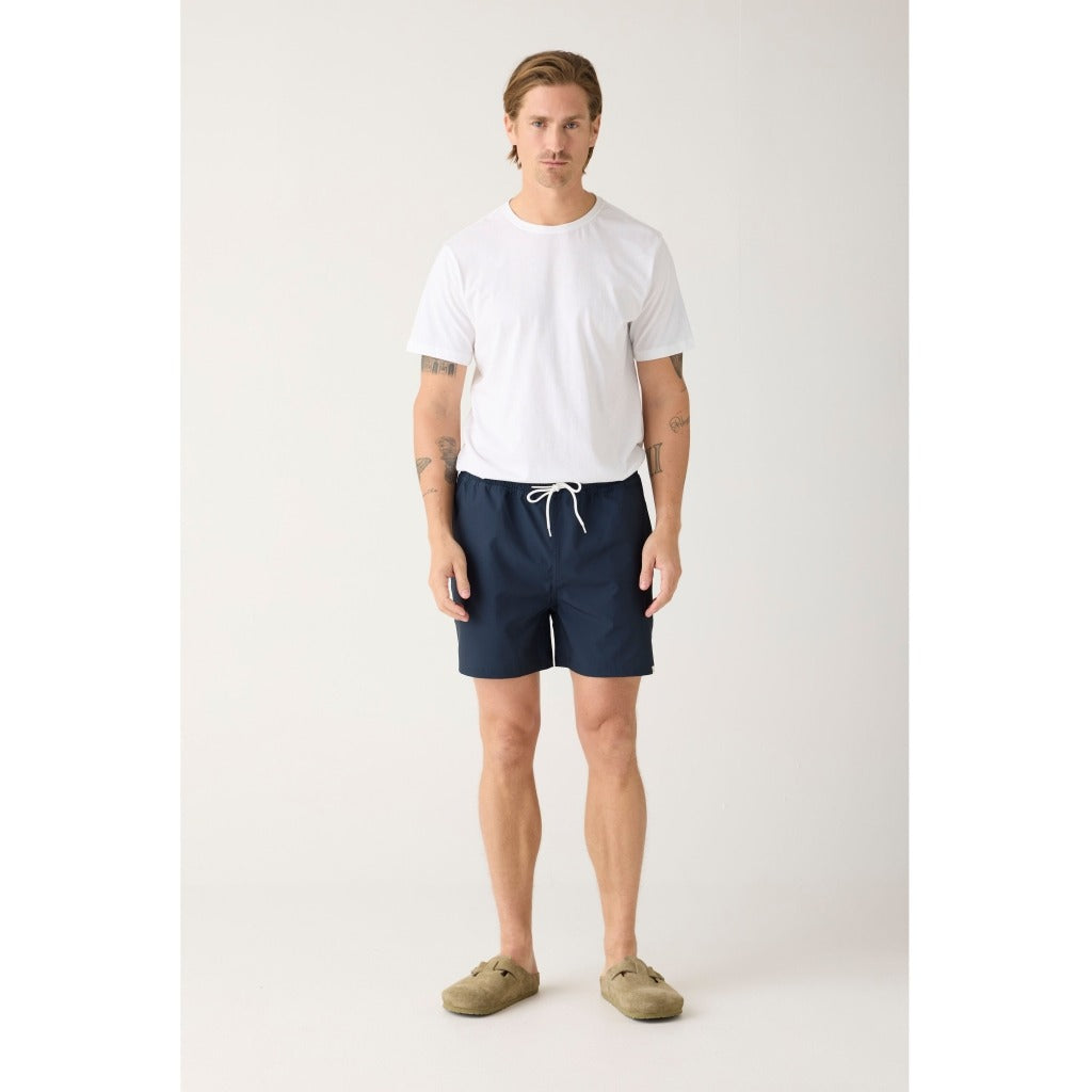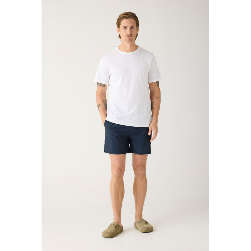 Diese aus 100 % Bio-Baumwolle gefertigten Boardwalk-Shorts kombinieren Funktionalität mit lässigem Stil. Mit ihrer entspannten Passform bieten sie eine bequeme und dennoch raffinierte Silhouette, die sich perfekt für legere Ausflüge oder zum Faulenzen am Wasser eignet. Der elastische Bund mit verstellbarem Kordelzug sorgt für eine individuelle Passform, während die Seitentaschen und eine Gesäßtasche zusätzliche Funktionalität bieten. Die strapazierfähigen und leichten Shorts sind eine vielseitige Ergänzung für Ihre Garderobe bei warmem Wetter und lassen sich mühelos mit Ihren Lieblingsoberteilen und -schuhen kombinieren.