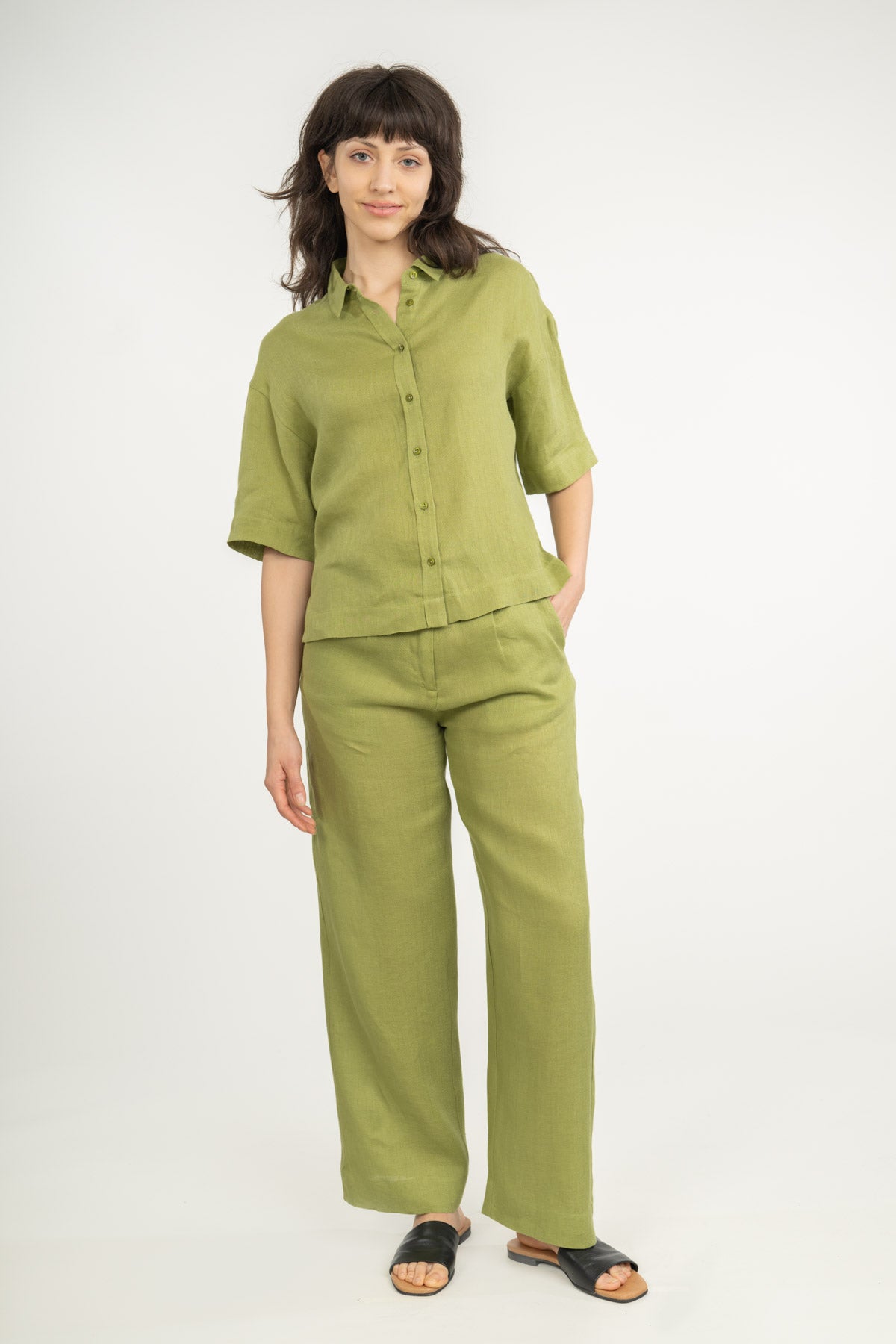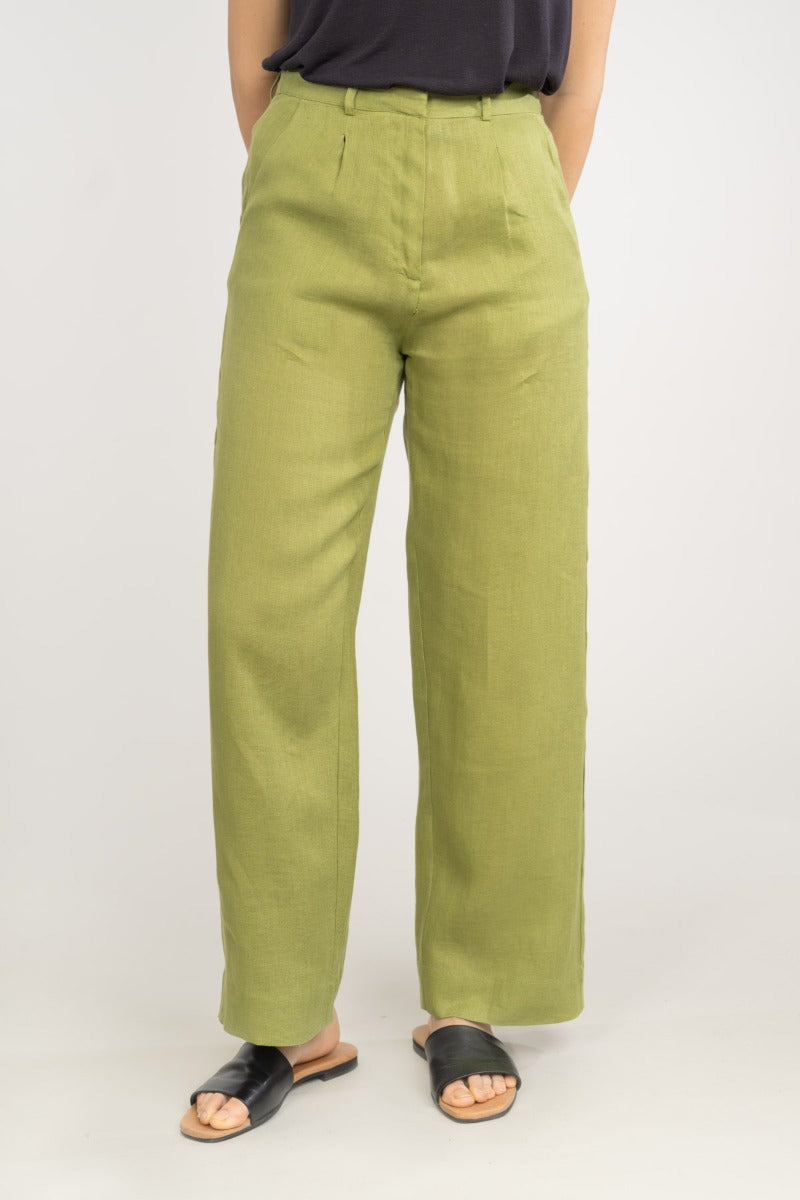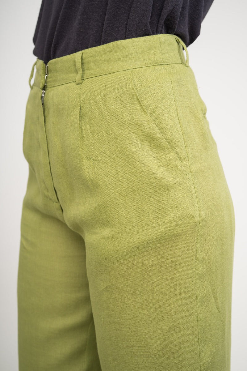 Die lockere Hose ist aus 100% Leinen hergestellt, damit sie den ganzen Tag kühl und bequem bleibt.