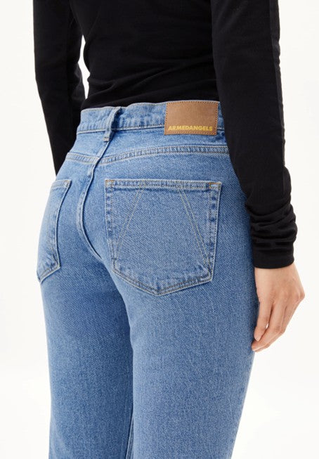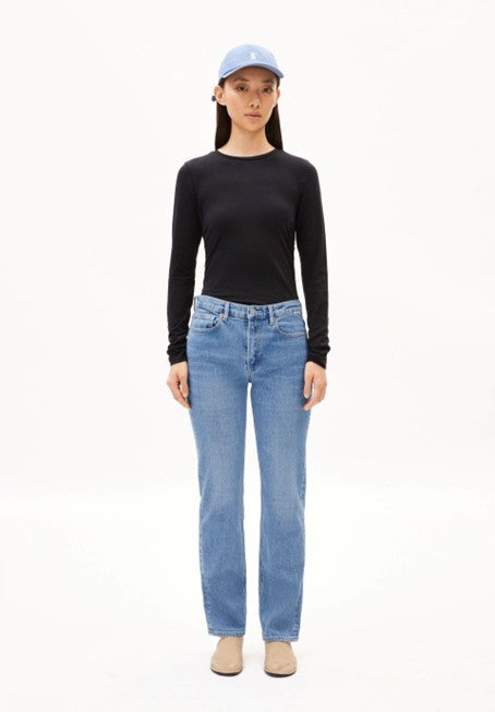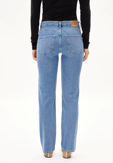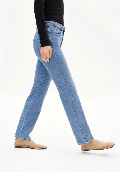 Die CARENAA Jeans kombiniert einen mittelhohen Bund mit geradem Bein. Das Material aus Bio-Baumwolle mit leichten Stretch-Anteil bietet angenehme Bewegungsfreiheit und sanfte Flexibilität. Sie ist ein Klassiker für jeden Kleiderschrank.
