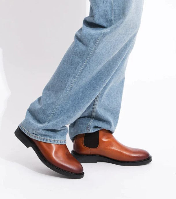 Step out in style with our Classic Chelsea Boot in Cognac Pull Up Leather. This boot is the perfect mix of classic and contemporary, with its sleek Chelsea design and rich cognac color. Made from high-quality, pull up leather, you'll enjoy both style and durability with every step.