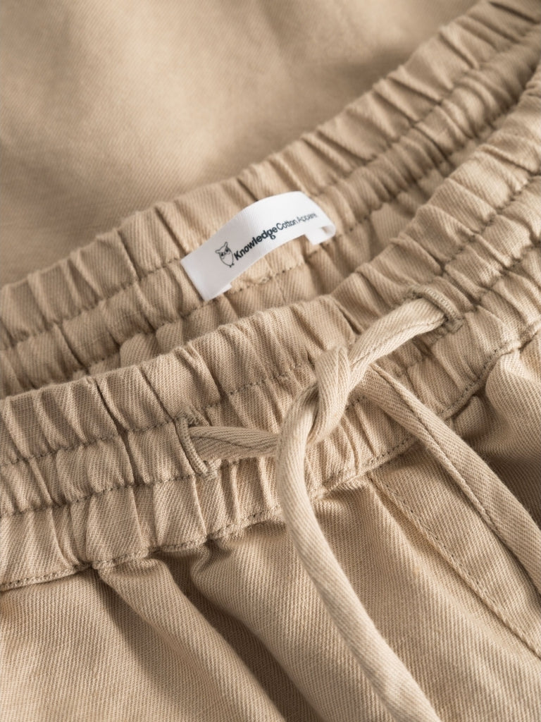 Choose a pair of soft shorts for warmer days. Our shorts are designed in a regular fit with an elastic waist, adjustable cords, and slanted front pockets. Made in a blend of organic cotton and linen, the quality feels incredibly soft, lightweight, and airy to wear.
