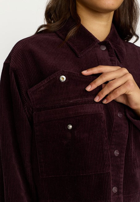 Dieses kurze Hemd ist aus Bio-Baumwollcord gefertigt und hat eine leicht übergroße Passform mit überschnittenen Schultern und weiten, langen Ärmeln. Die Knopfleiste und die Manschetten werden mit farblich abgestimmten Selfhood-Logo-Druckknöpfen geschlossen, und die kastenförmigen Brusttaschen verleihen dem Hemd einen markanten Look. Tragen Sie dieses Hemd zu weiten Hosen oder als zusätzliche Schicht in den kalten Monaten.