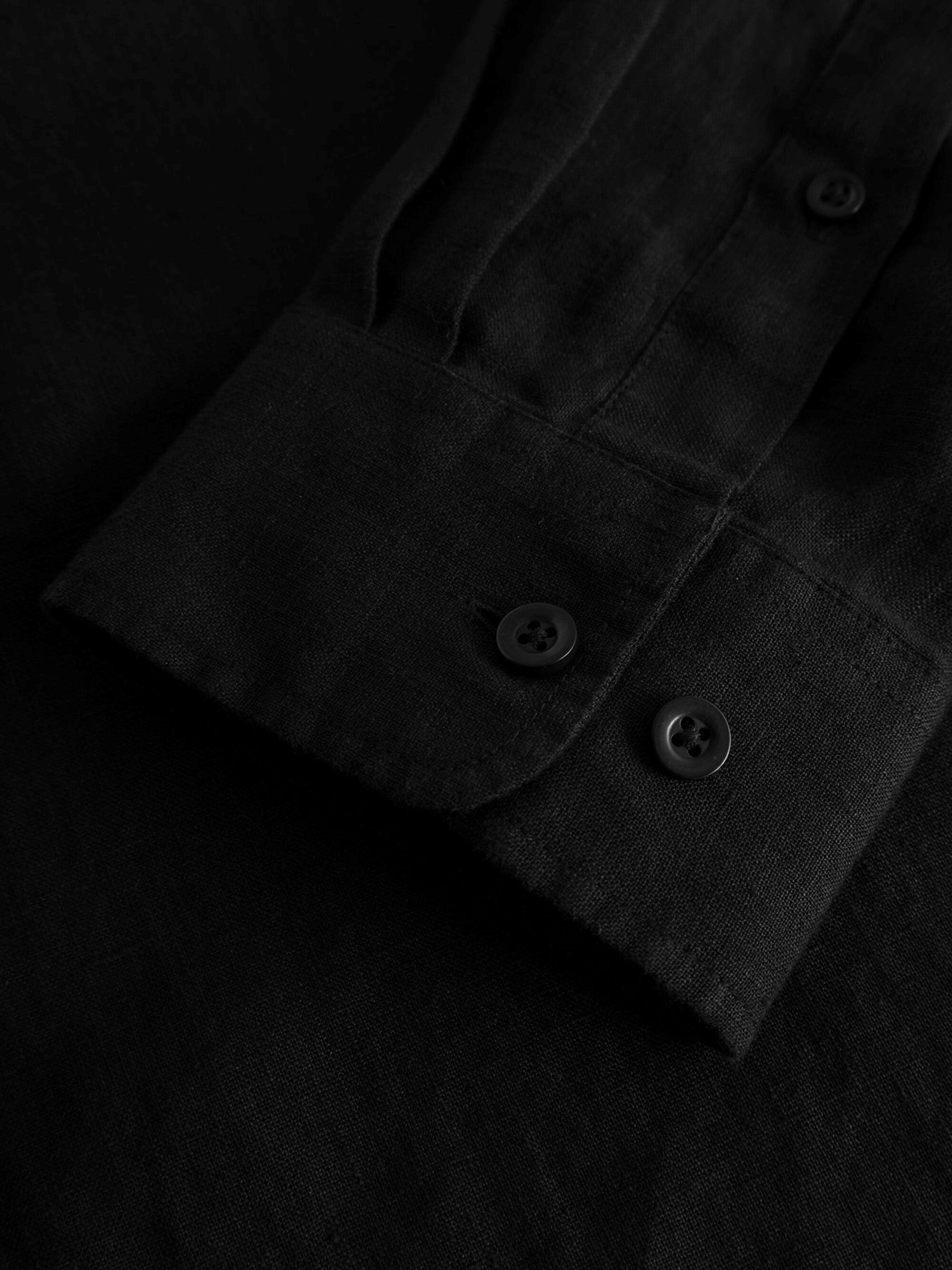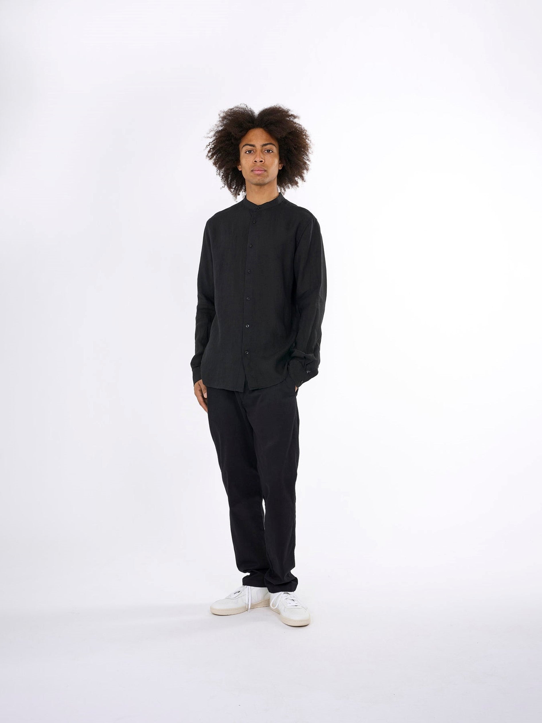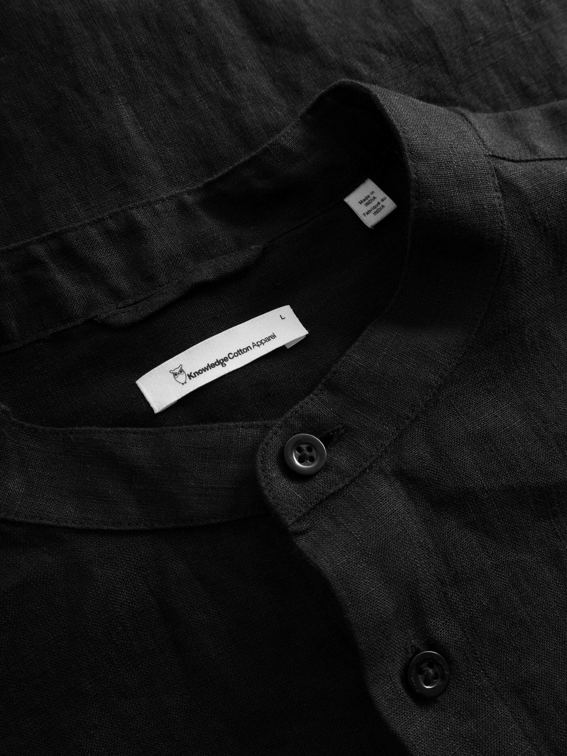 CUSTOM FIT LINEN STAND COLLAR SHIRT