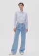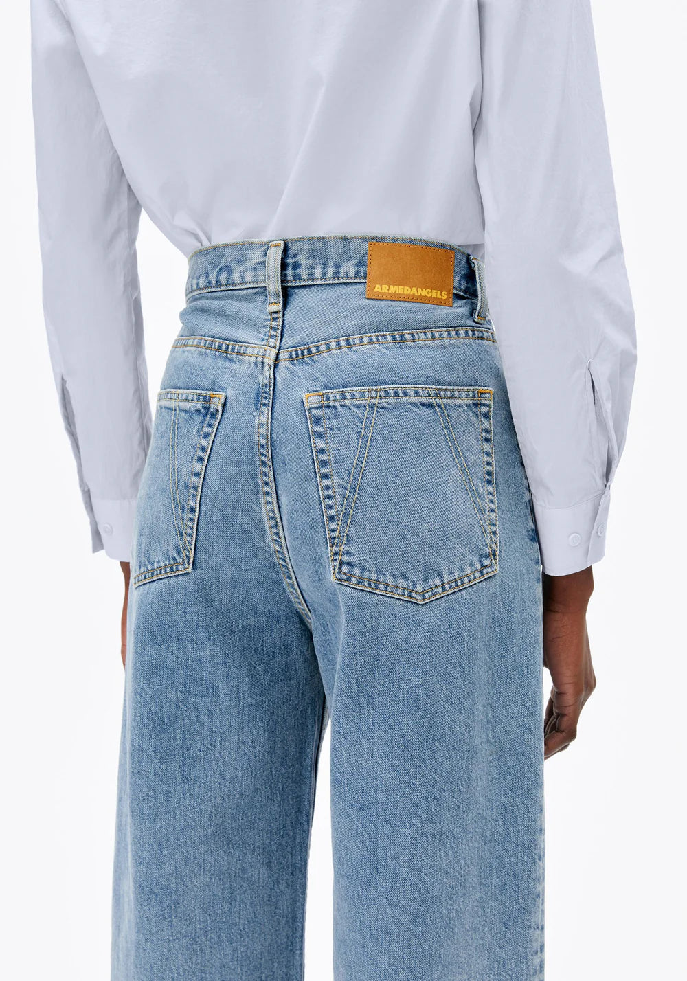 Unsere ENIJAA Jeans zeichnet sich durch einen High-Waist-Schnitt und ein weites Bein aus, das die Taille betont und das Bein optisch verlängert. Gefertigt aus 100% recycelter Baumwolle, bietet sie ein festes, stretchfreies Material, das dennoch bequem ist – ideal für einen authentischen Jeans-Look.