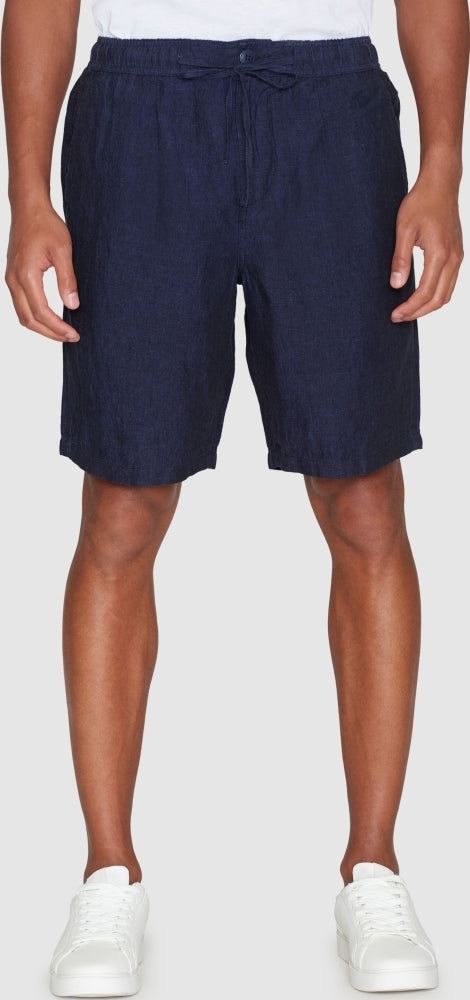 Choose a pair of soft and responsibly made shorts for warmer days. Our loose linen shorts are designed in a straight fit with an elastic waistband, adjustable cords, and button closure. Made from 100% organic linen, the quality feels incredibly soft, lightweight, and airy to wear. The shorts have a natural melange dye and are finished with slanted front pockets and discrete back pockets.