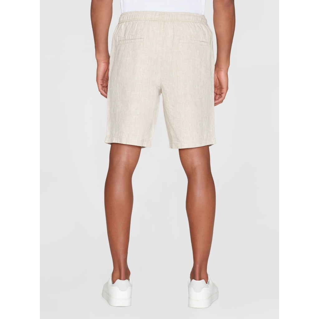 Choose a pair of soft and responsibly made shorts for warmer days. Our loose linen shorts are designed in a straight fit with an elastic waistband, adjustable cords, and button closure. Made from 100% organic linen, the quality feels incredibly soft, lightweight, and airy to wear. The shorts have a natural melange dye and are finished with slanted front pockets and discrete back pockets.