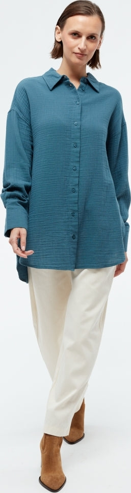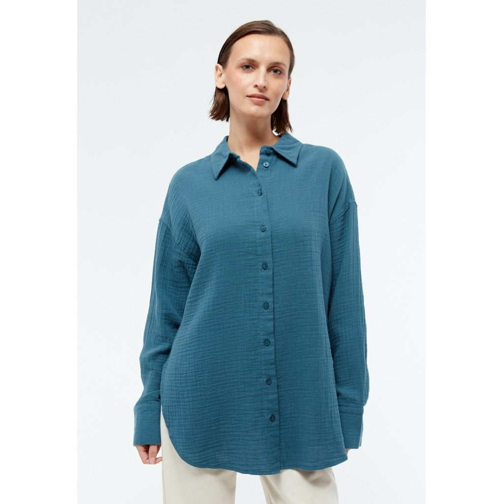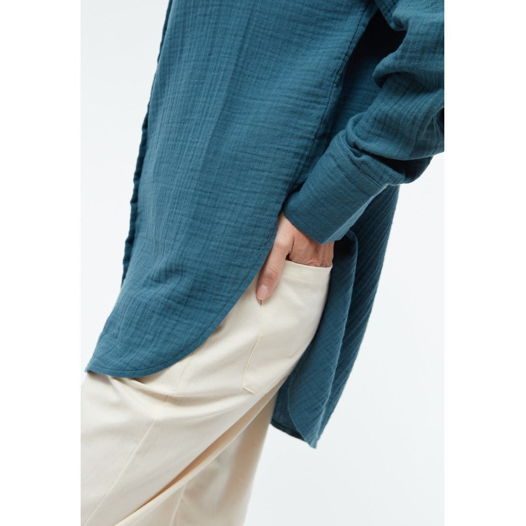 GBCosima ist eine lockere Bluse in Übergröße aus Baumwollmusselin. Das strapazierfähige Material ist atmungsaktiv und stückgefärbt - das Färbeverfahren ist ressourcenschonend, da kleinere Mengen nach Bedarf gefärbt werden können. Durch den abgerundeten Saum entstehen schöne Schlitze an den Seiten. Ob als Bluse, Überhemd oder Kleid, Sie können sie lässig oder elegant kombinieren