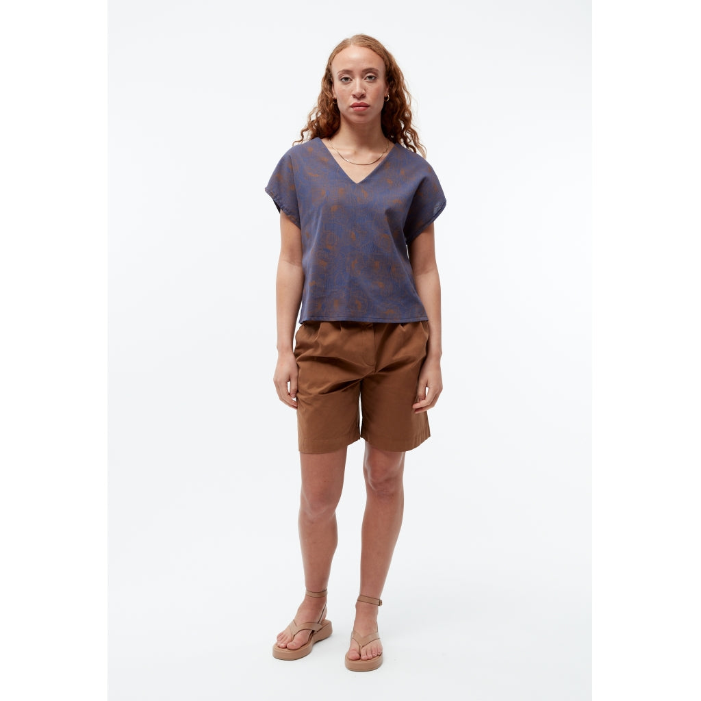GBRuby ist ein Top aus hochwertiger Bio-Baumwolle und einer unserer absoluten Bestseller. Das taillierte Oberteil mit V-Ausschnitt hat etwas kürzere Ärmel und ist aus leichtem Crêpe-Material gefertigt. Der von Japan inspirierte Blumendruck macht die Bluse zu einem echten Hingucker.