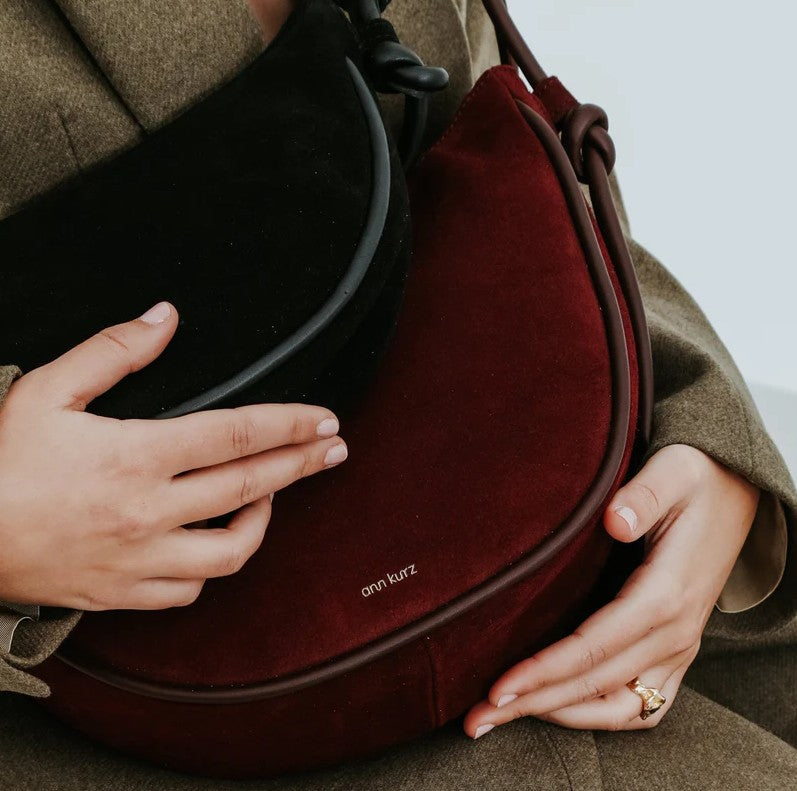 Crossbody or shoulder bag made of burgundy mix leather. It stands out for its versatile design and zipper closure.
