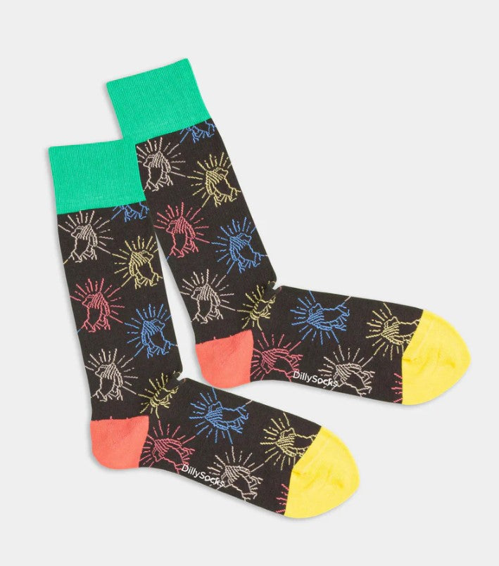 Diese Socken können über den Füssen, aber auch über der Hand getragen und mit Kulleraugen versehen werden.