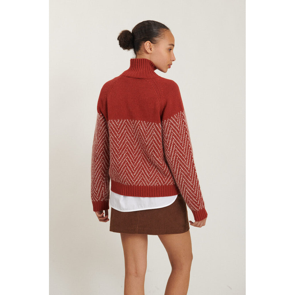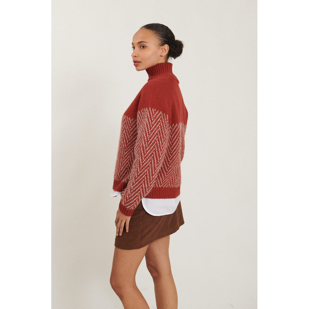 Henny Raglan T-neck has a loose fit, raglan sleeves and high neck. The sweater has been decorated with a beautiful pattern.