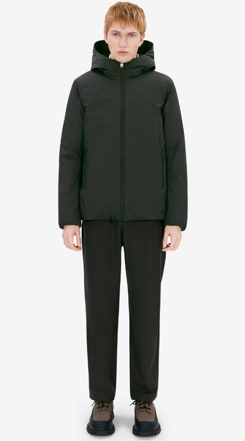 Henric is a super lightweight jacket made from Nylon Ripstop 5K fabric. The durable material is crisp to the touch with good structure to it and a semi-glossy surface. Details include wind- and waterproof properties, three layers of warm yet light-as-air padding, and pre-bent sleeves that follow the natural curve of your arms. Wear Henric for a sophisticated, yet functional look that makes hiking up and down city streets effortless. The model is 187 cm tall and wearing a size M. Length of winter jacket: 78 cm (size L).