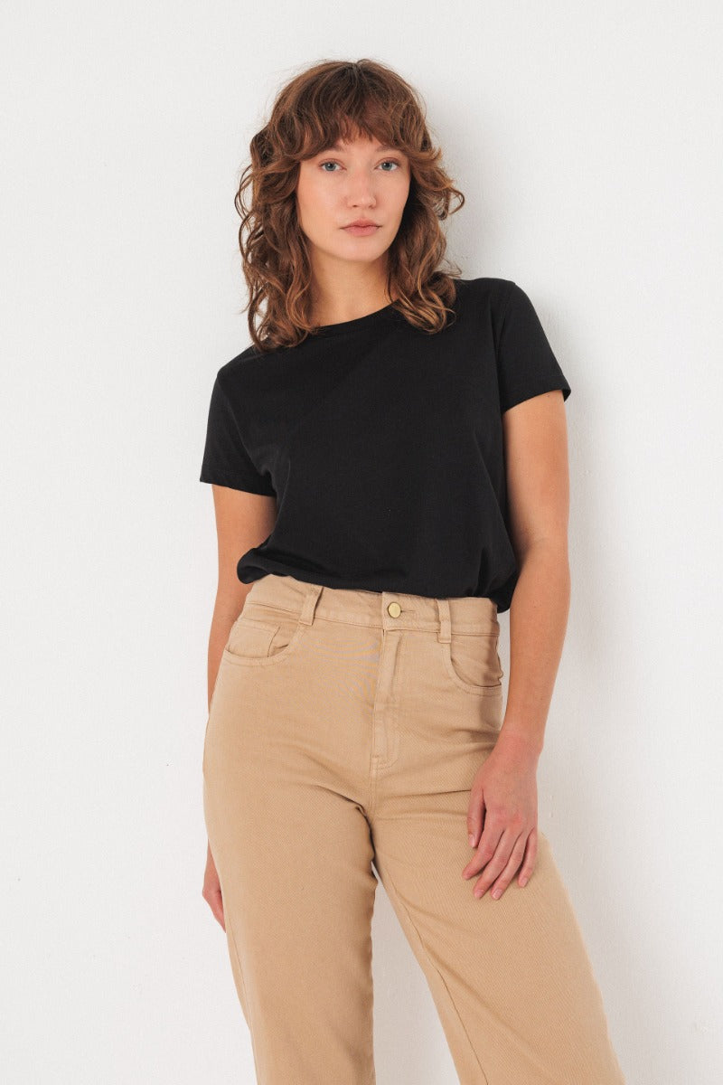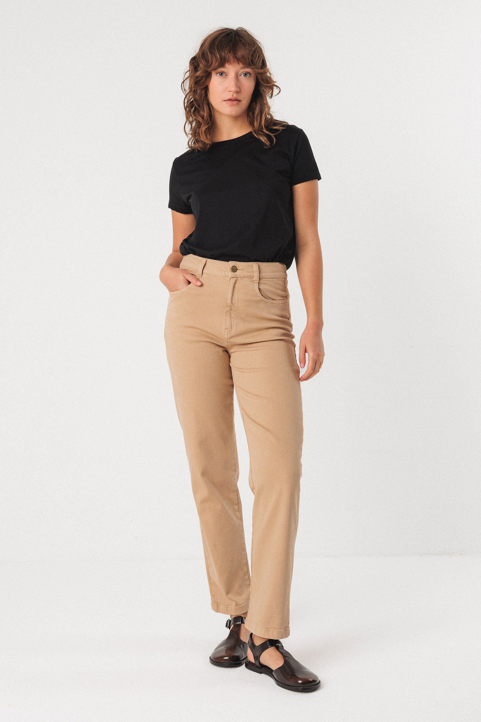Gerade Hose aus elastischer Bio-Baumwolle. Reißverschluss vorne und Einschubtaschen.
