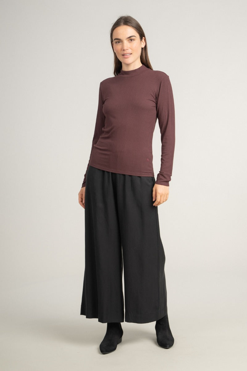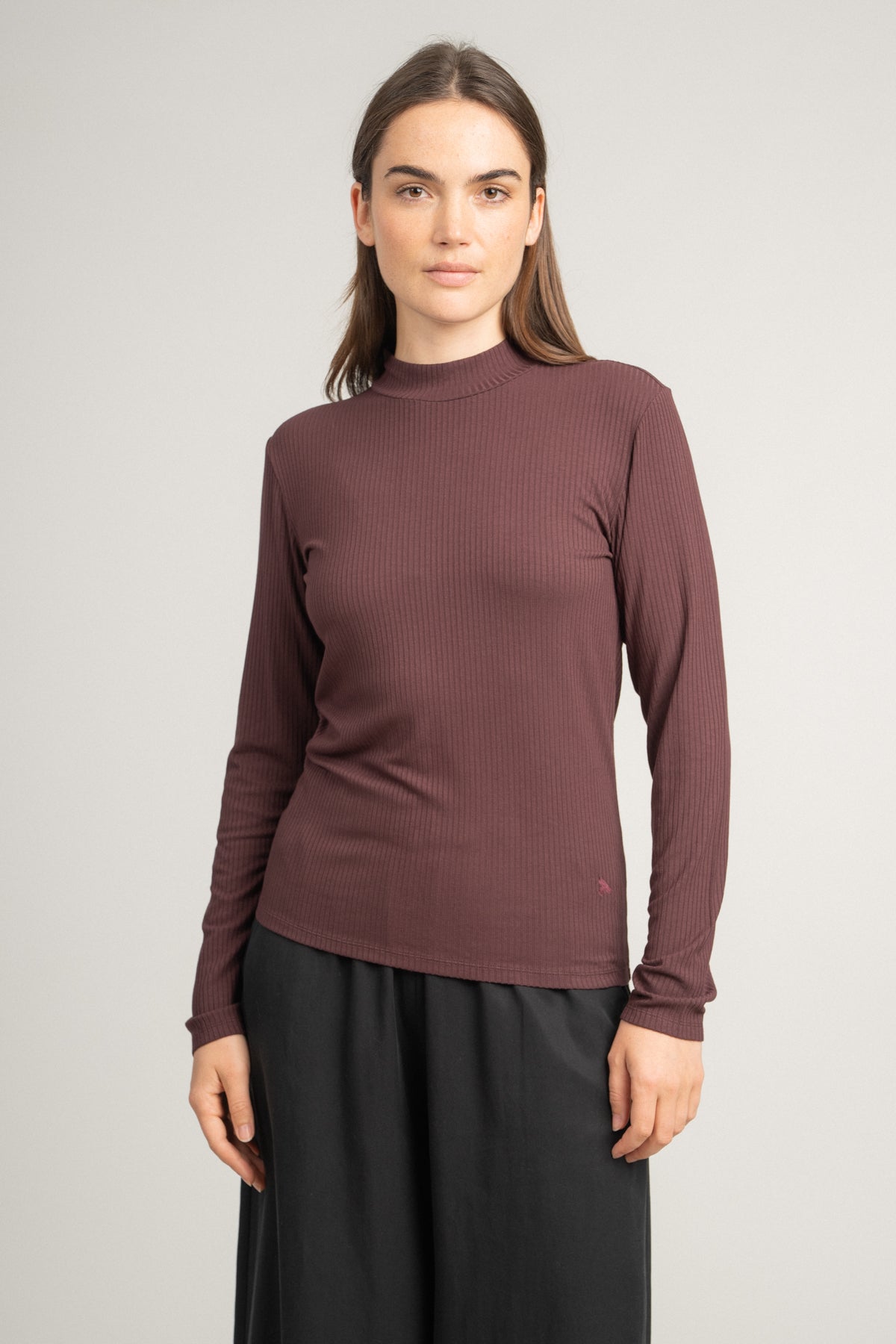 Enganliegendes Langarmshirt mit breiter Ripp-Optik und hohem Kragen.