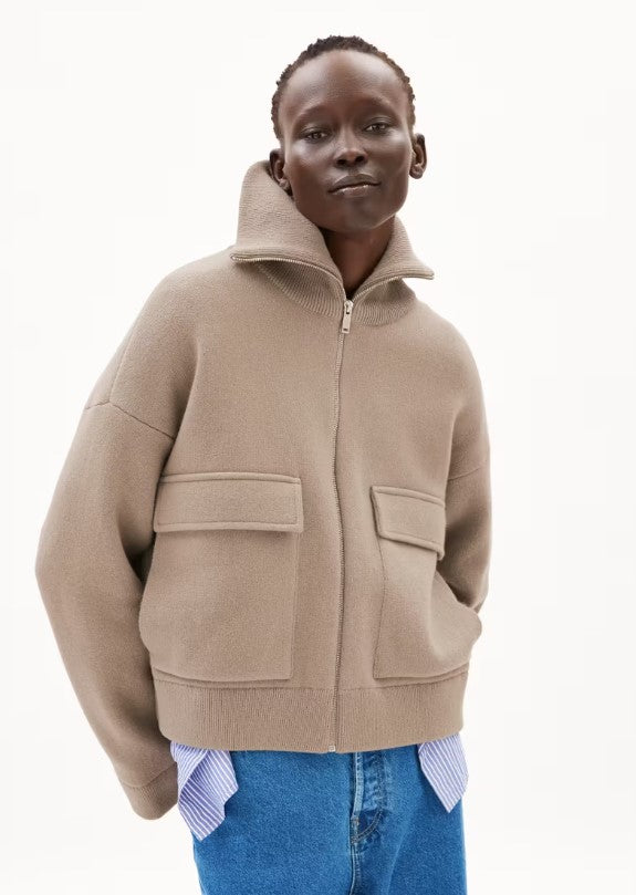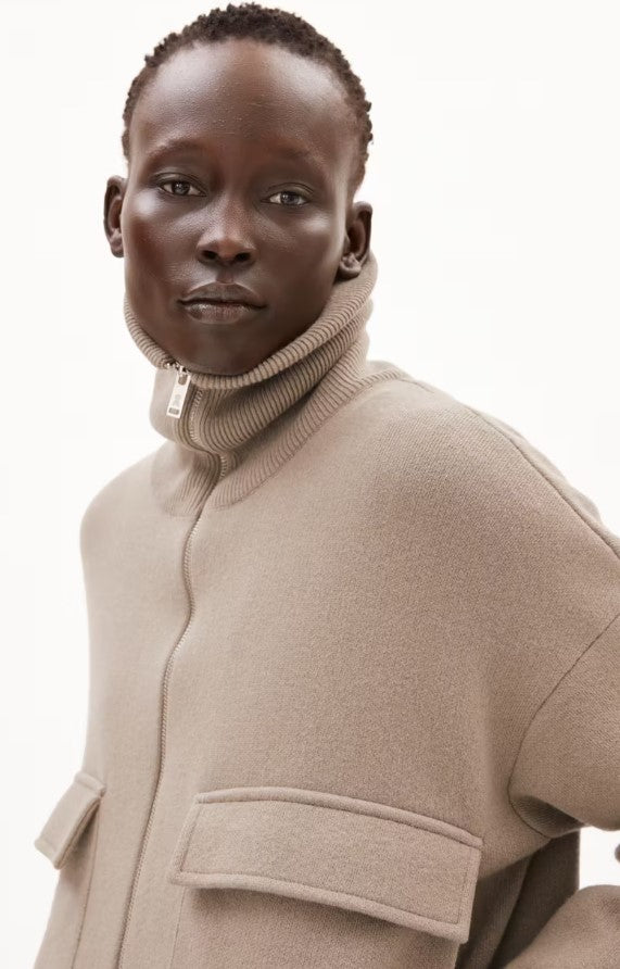 Entdecke die JOANIAAS Strickjacke aus feinem Strick mit einem großzügigen Oversized und cropped Schnitt für einen lässigen Look! Das schlichte, kantige Design verleiht ihr eine moderne Note, während der Mock-Ausschnitt und der Stehkragen für einen klassischen Touch sorgen. Die großen, aufgesetzten Taschen sind nicht nur praktisch, sondern auch stilvoll. Mit einem Mix aus Bio-Baumwolle, Bio-Wolle sowie recyceltem Polyamod, ist diese Jacke besonders bequem. Hol sie Dir jetzt und verpasse nicht den lässigen Komfort!