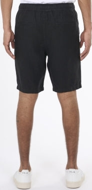 Choose a pair of soft shorts for warmer days. Our loose linen shorts are designed in a straight fit with an elastic waistband, adjustable cords, and button closure. Made from 100% organic linen, the quality feels incredibly soft, lightweight, and airy to wear. The shorts have a natural melange dye and are finished with slanted front pockets and discrete back pockets.