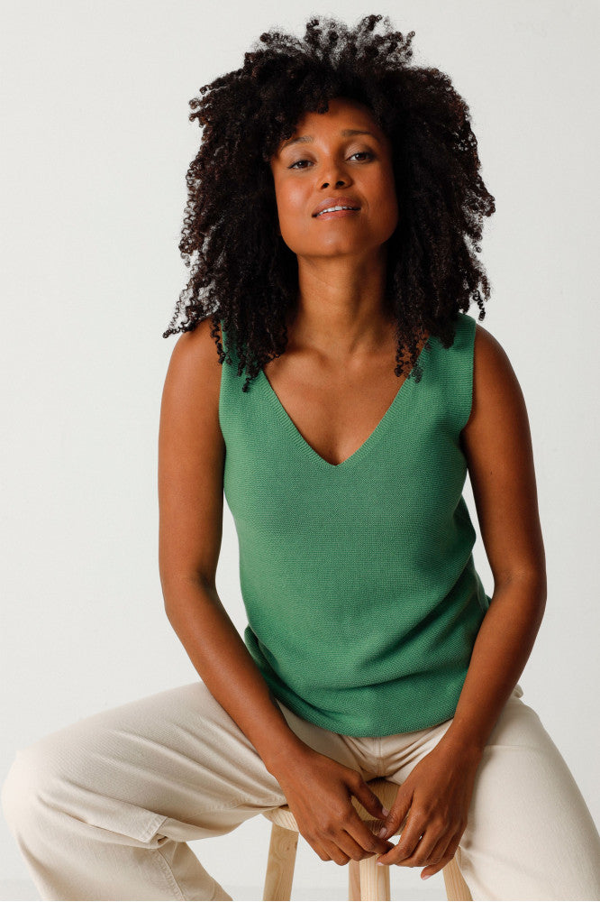 Organic cotton tricot tank top with a V-neck and a regular fit