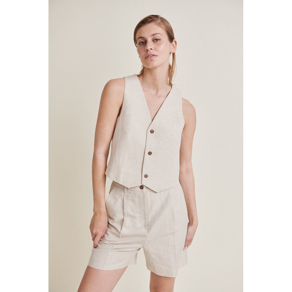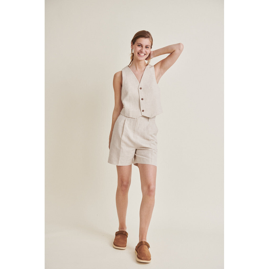 Nata Shorts are made from 100% linen, which makes them light and comfortable to wear. The shorts have pleats at front and a welt pocket on the back.
