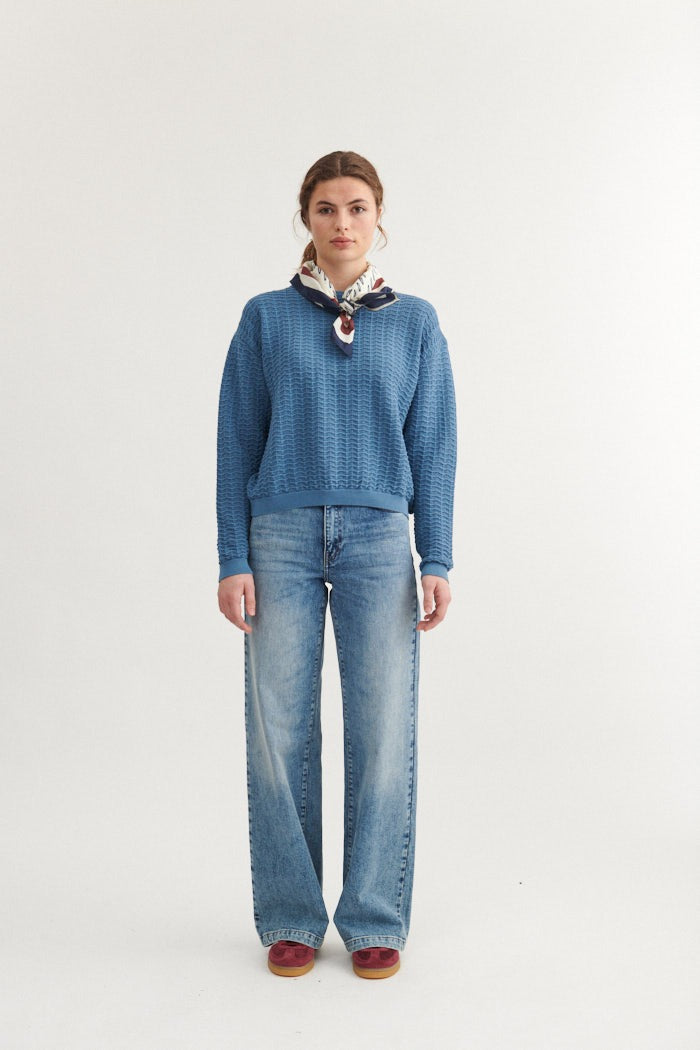 er Osi-Pullover hat eine lockere Passform und lange Ärmel. Er besteht zu 100 % aus Bio-Baumwolle.