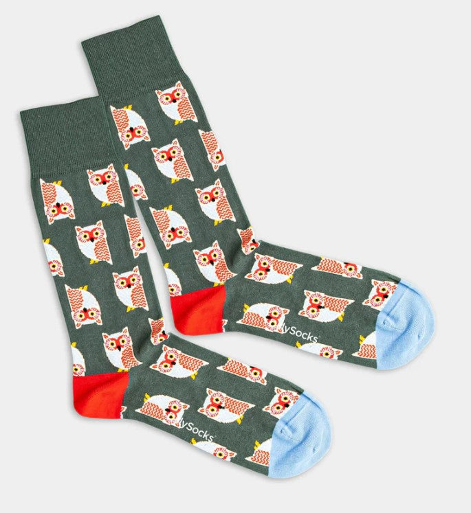 Nur um deine schönen bunten Socken zu sehen dreht der Uhu seinen Kopf um 360 Grad, sonst tut er das nie.