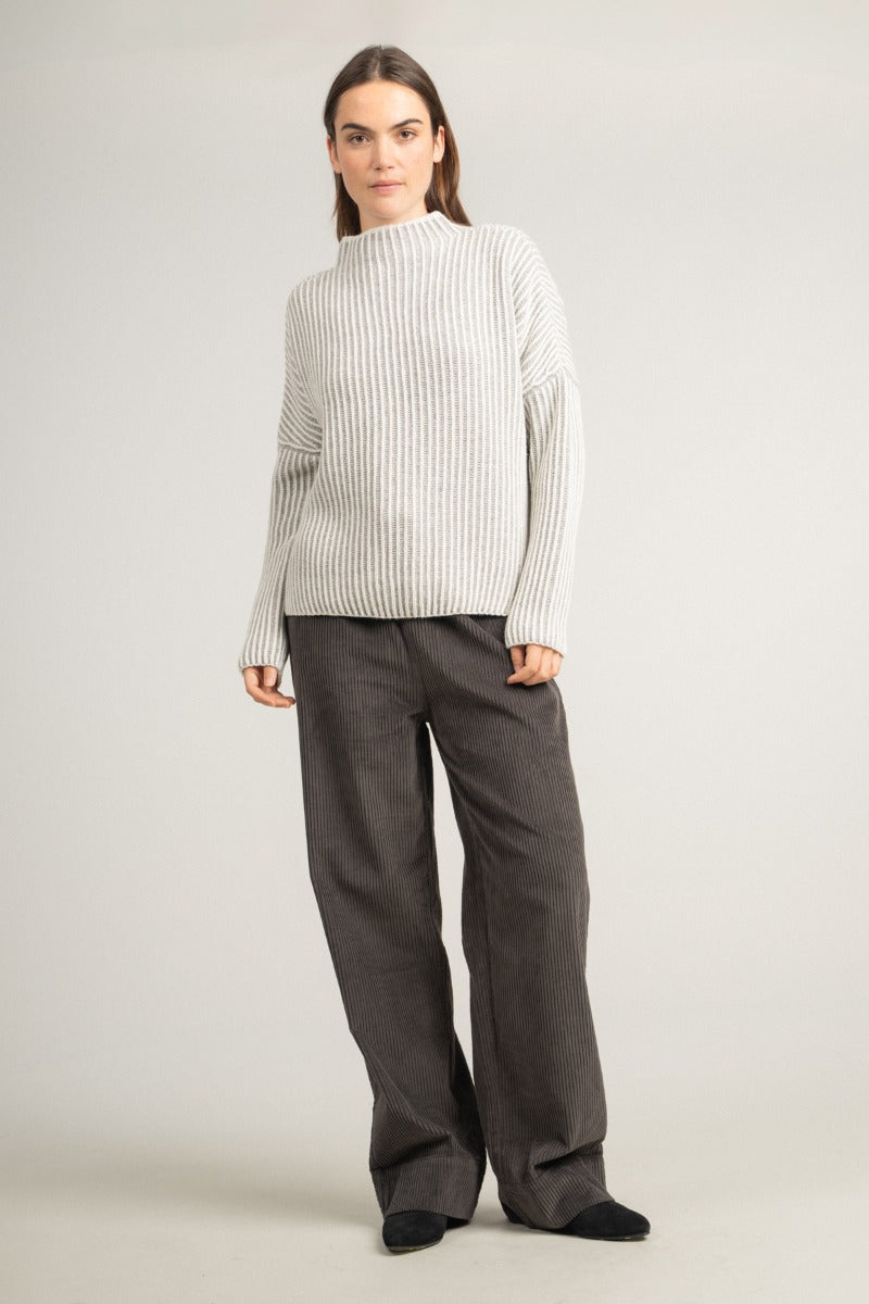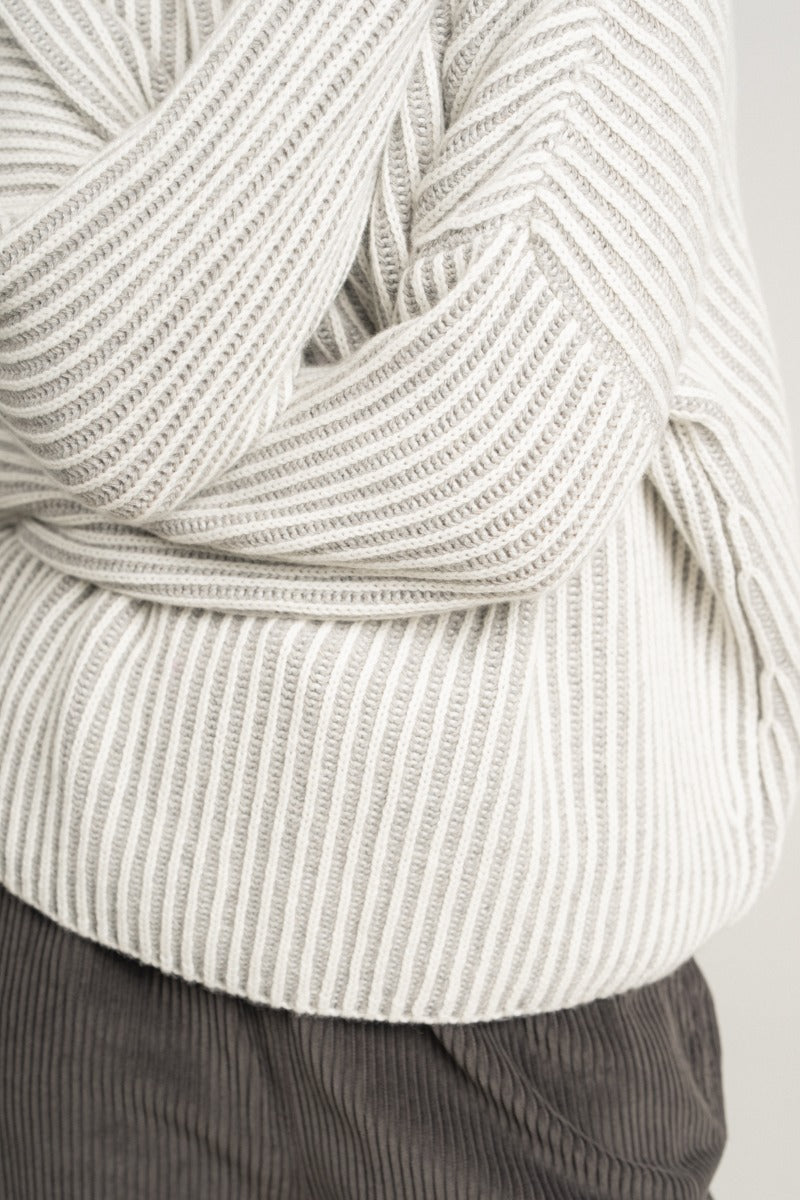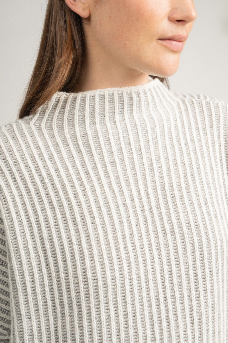 Weicher Strickpullover aus recycelten Materialien mit zweifarbigem Strick und lockerem Sitz mit Stehkragen